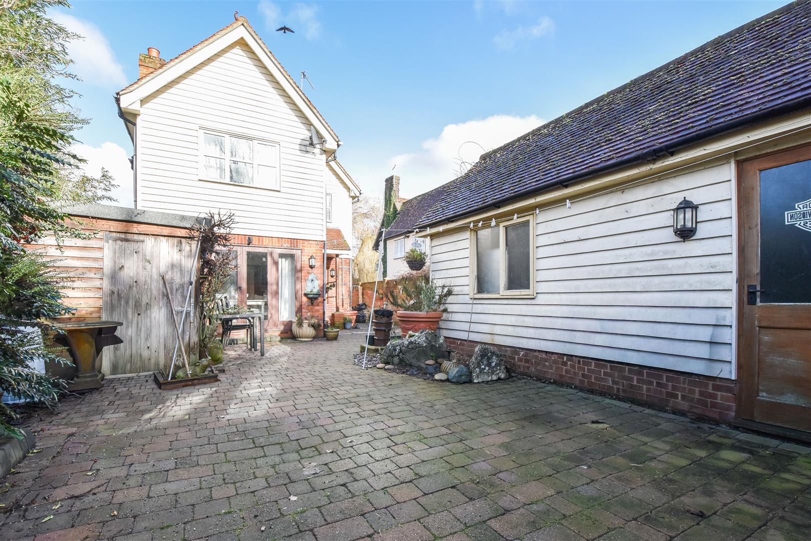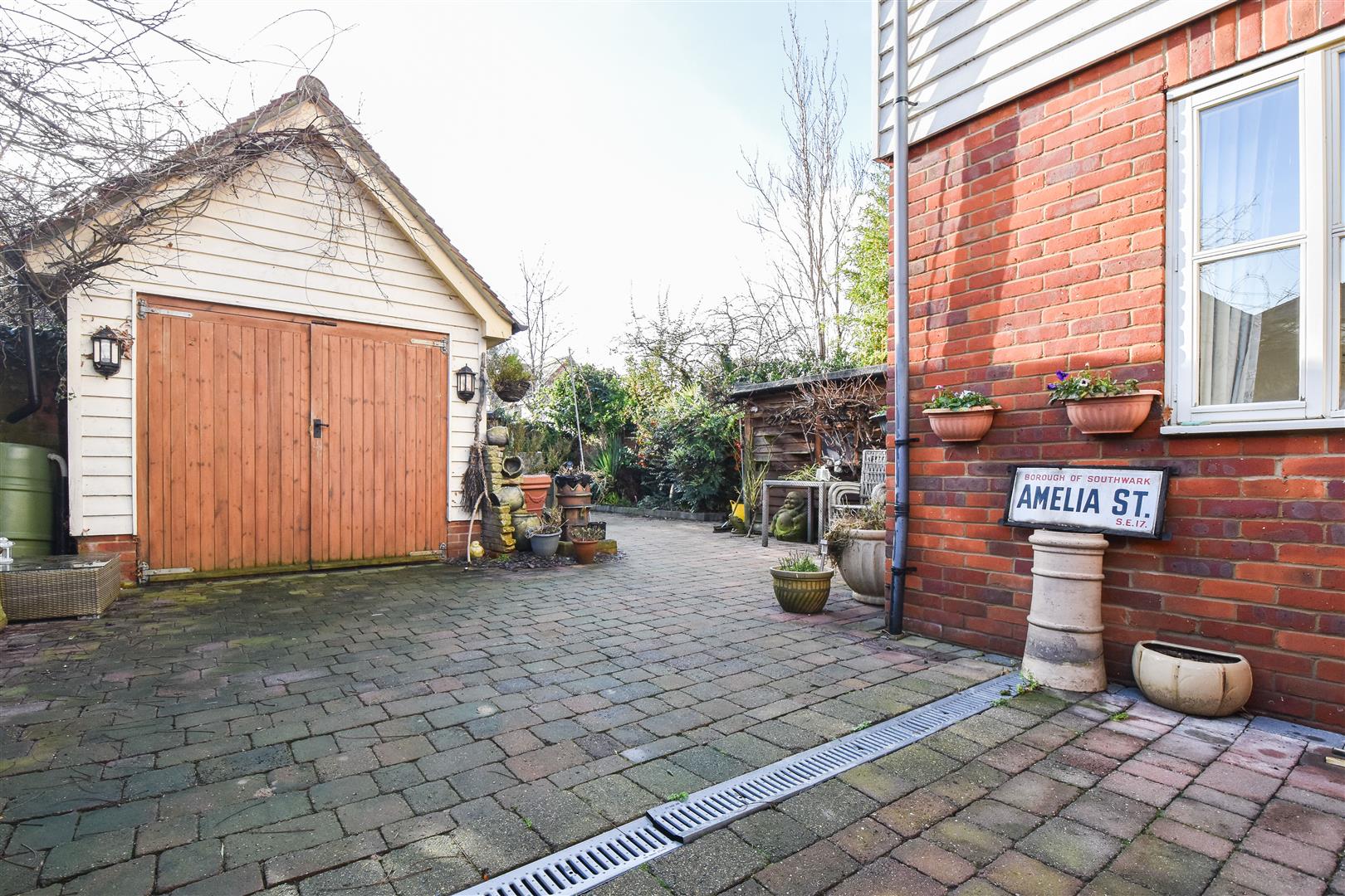 To the side of the property there is a block paved driveway, behind wrought iron gates, which gives access to a detached garage within the rear garden. The remainder of the garden is laid to block paving, creating a courtyard style garden. A wooden storage shed will remain.