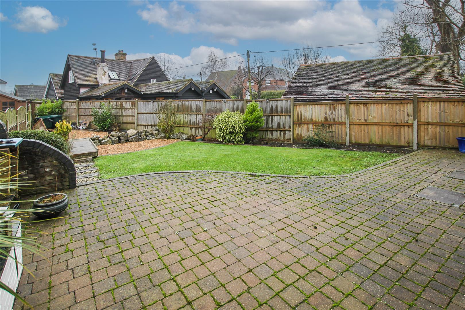Exterior - Rear Garden - Commencing with a block paved patio which leads into sections of lawn to the rear and side. The bottom of the garden is laid to loose stone where you will find a timber framed shed which will remain. Side pedestrian access through to the front of the property.
