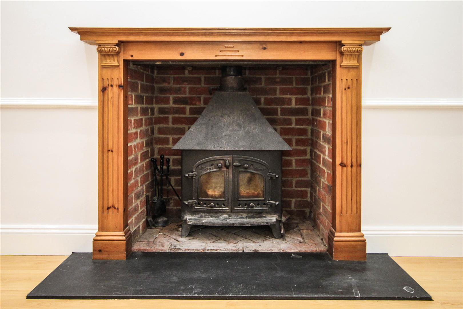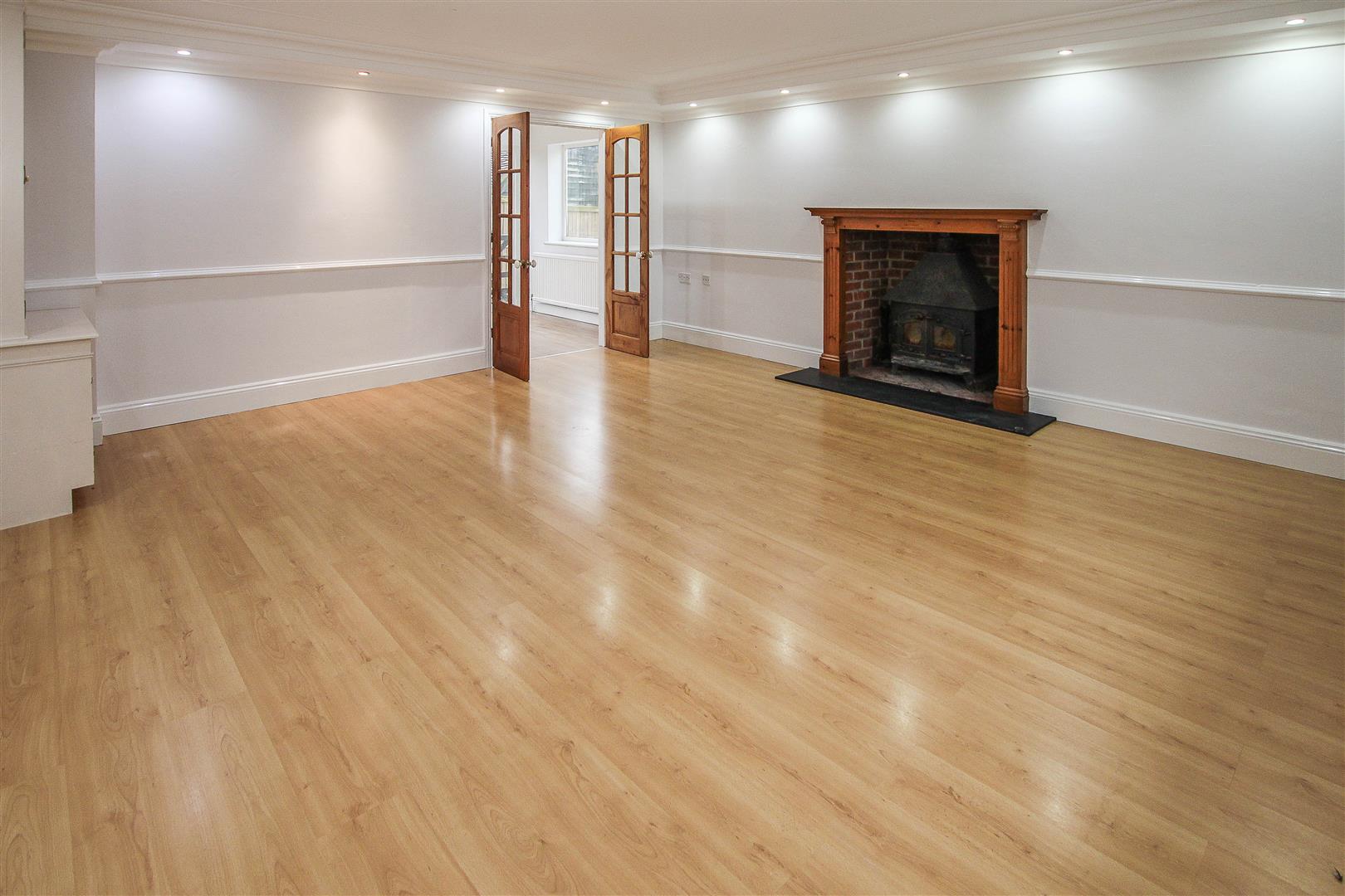 Lounge - 5.38m x 5.13m (17'8 x 16'10) - Window to front aspect. Laminate wood strip flooring. Feature log burning stove. Double doors through to :