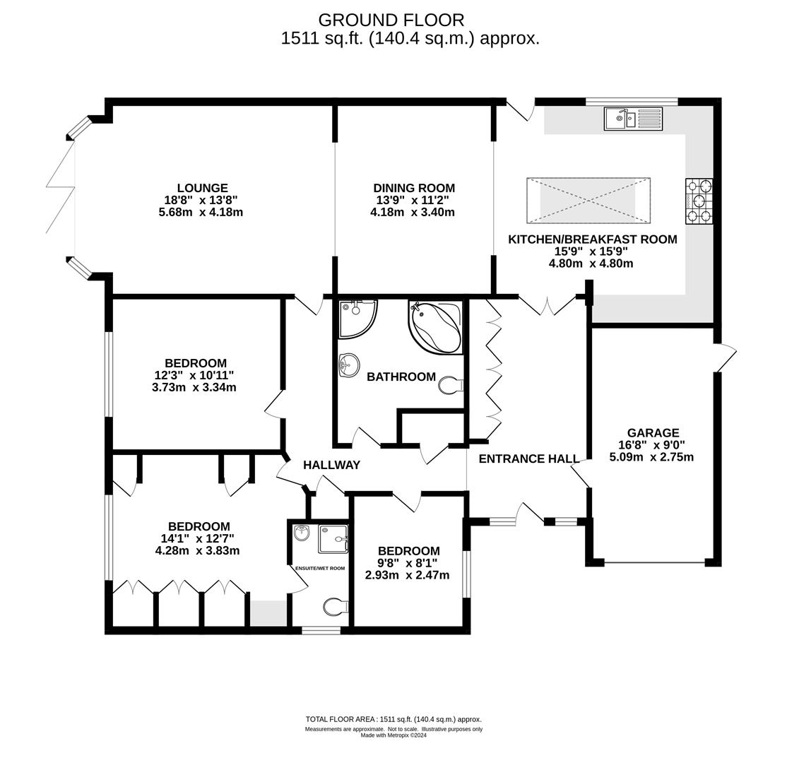 Entering the property, you find yourself in a wide entrance hall with a range of fitted cupboards to one wall providing excellent storage options. The entrance hall opens into a further L-shaped hallway with additional storage, and there is access to all rooms and the garage from these areas. There are three double bedrooms, all are of good proportions, with the master bedroom benefitting from having a good selection of fitted bedroom furniture along with access into an en-suite wet room. A four-piece, family bathroom features a lovely, tile effect vinyl floor covering and includes corner bath with hand-held shower attachment, separate corner shower cubicle, close coupled w.c and wash hand basin.