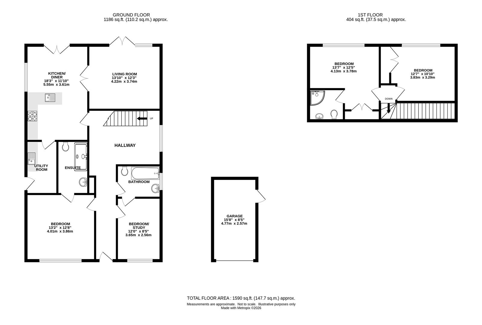 Ground Floor Bedroom - 4.01m x 3.86m (13'2 x 12'8) - Window to front aspect. Door to :