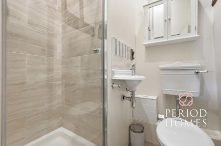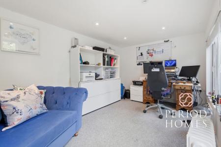 Internally, the home is thoughtfully arranged to offer versatile living accommodation. The ground floor boasts a welcoming living room, a spacious dining room ideal for family gatherings, and a well-appointed kitchen with adjoining utility space. Each room is filled with natural light, enhancing the home’s warm and inviting character. Period details subtly complement contemporary finishes, resulting in a harmonious balance throughout.