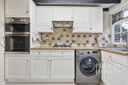 Stepping inside, the ground floor features a bright and spacious living/dining room, offering ample space for both relaxation and entertaining. The room’s proportions allow for flexible furniture arrangements while maintaining a warm, welcoming atmosphere typical of period cottages. To the rear, the kitchen is well-appointed and provides access through to the ground floor bathroom, creating a practical layout that maximises the available space.