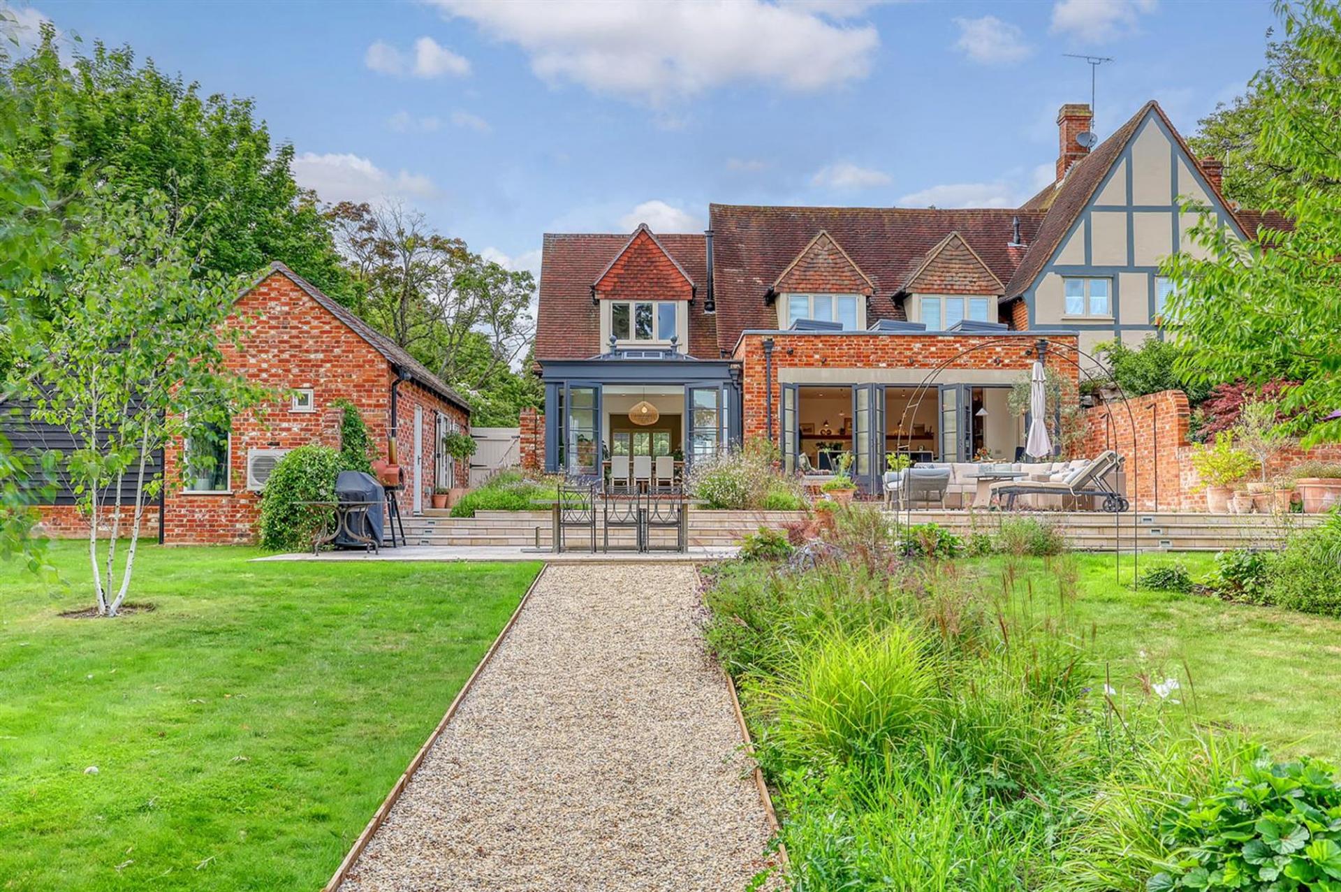 Set beside the historic All Saints Church and surrounded by greenery, this magnificent 1800’s home is just a short stroll from the centre of Stock village. Once serving as the Coach House to the neighbouring Rectory, the property now stands as one of the most desirable properties in the area, set within grounds approaching 0.75 acres. Accessed via a quiet private lane, the house enjoys a generous driveway with car port and a detached garden office/studio. Internally, the home extends to approximately 2,700 sq ft plus outbuildings and has been reimagined to provide the most superb interior, perfectly in keeping with its traditional origins, with every modern convenience you could wish for.
