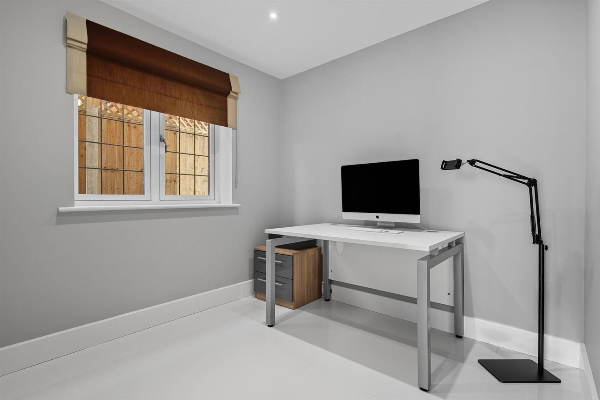 The welcoming entrance hall leads to a bright sitting room, a dedicated study, and a generous open-plan kitchen/family space. Spanning the full width of the home, the kitchen/family room is the true heart of the property, complete with bi-fold doors opening onto the garden for seamless indoor-outdoor living. A utility room with additional garden access and a guest WC further enhance the layout. Upstairs, the first floor offers three well-sized bedrooms, including one with an en-suite, along with a modern family bathroom. The top floor hosts a superb principal suite, creating a private and tranquil retreat. The home is presented throughout in immaculate condition, showcasing quality finishes and a refined modern style.