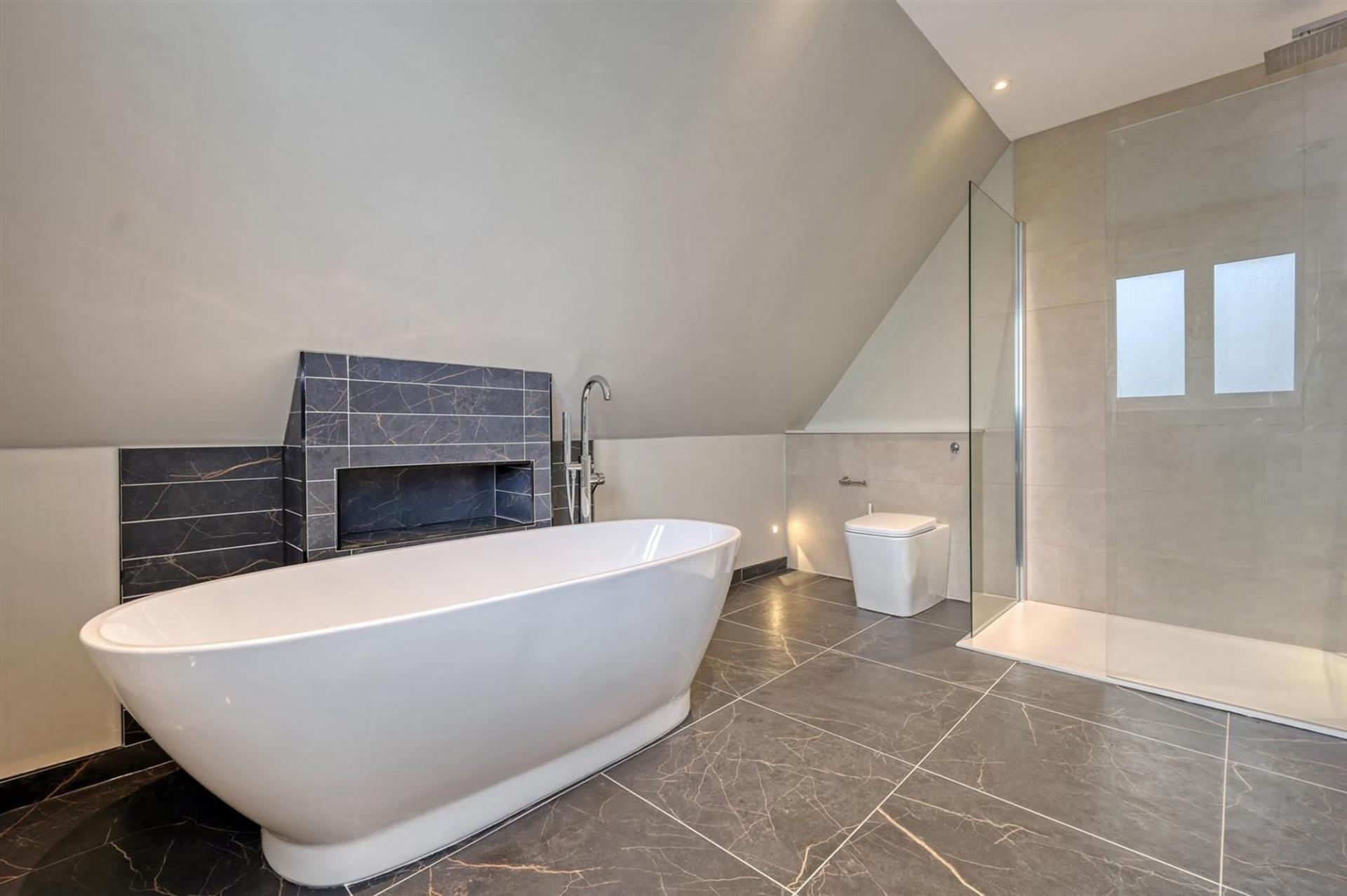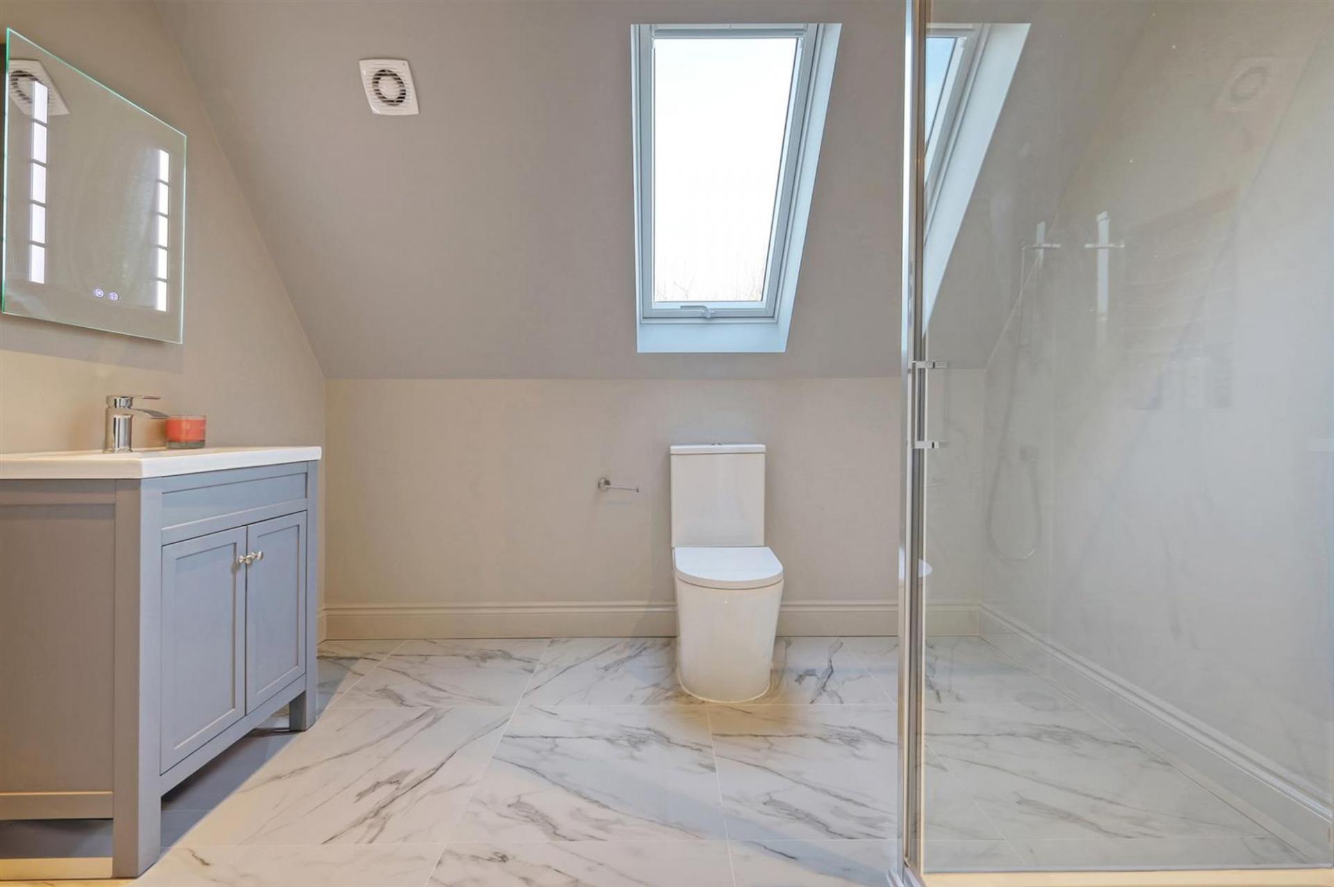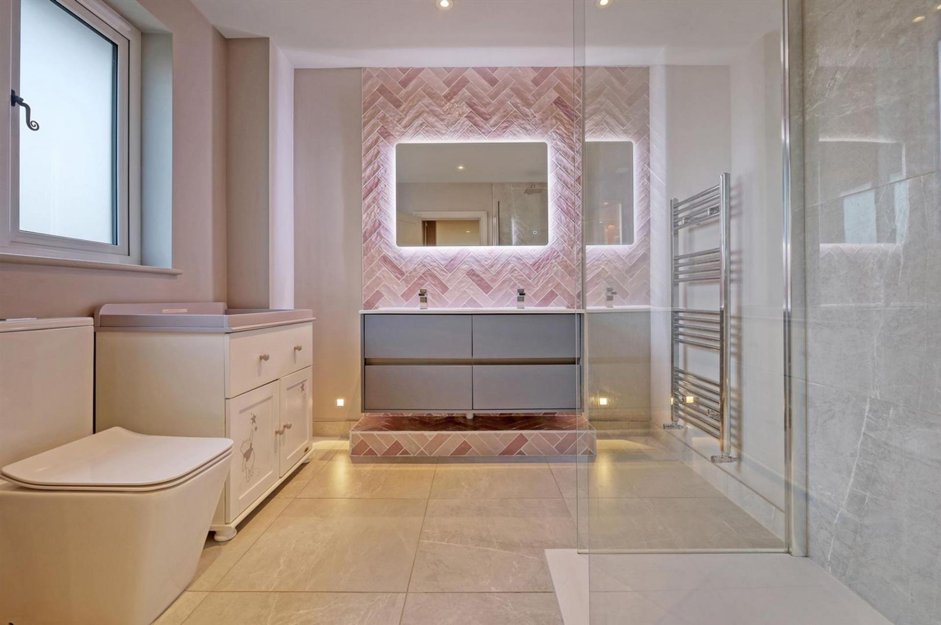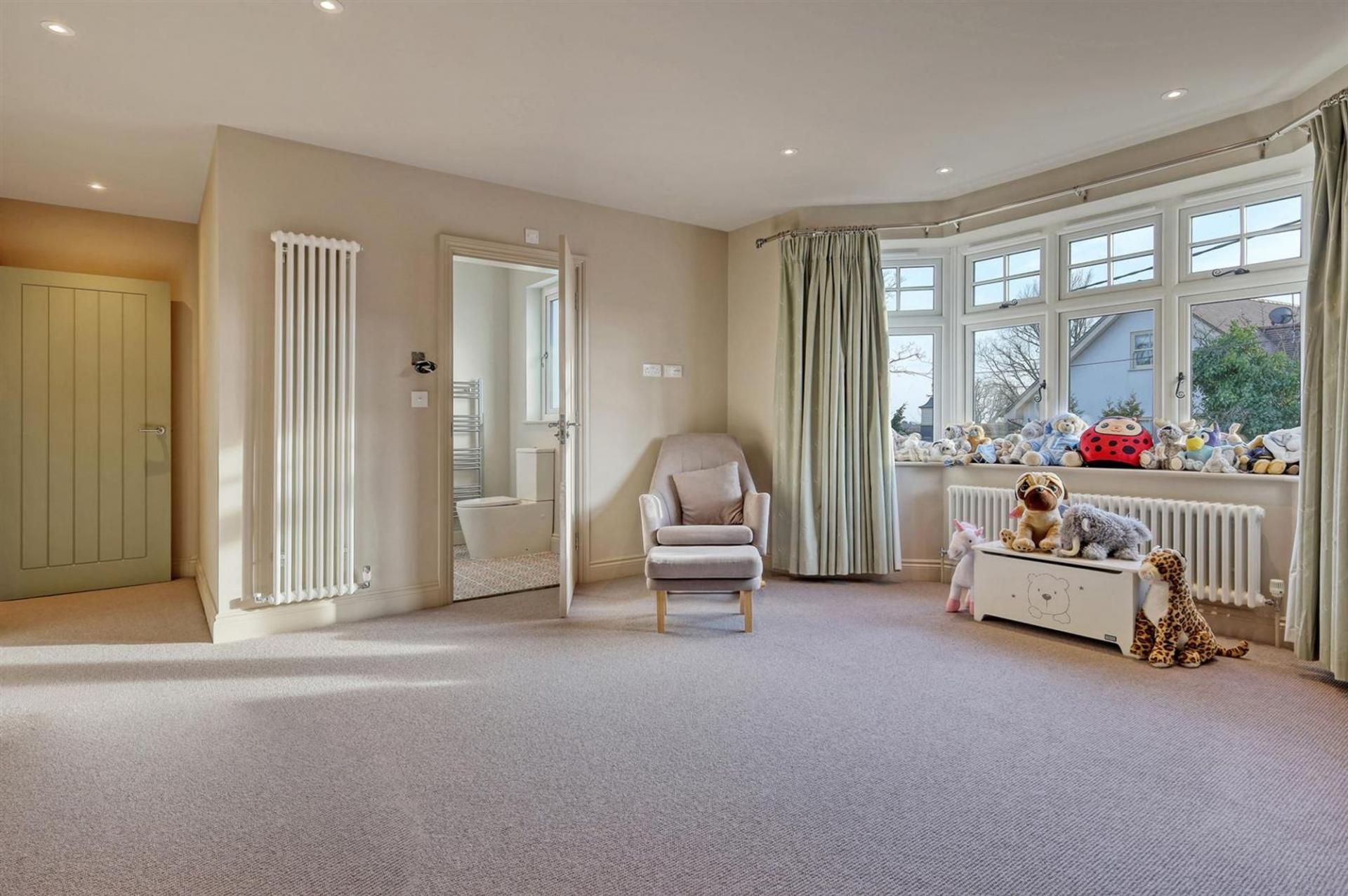 The property boasts five generously sized bedrooms, three of which are en-suite, all with immaculate finishes, including bespoke woodwork including skirting & doors. There is a fourth family bathroom which serves bedrooms four and five. The thoughtfully landscaped wraparound garden offers multiple seating areas amidst mature trees, providing both privacy and delightful spots to relax & entertain.