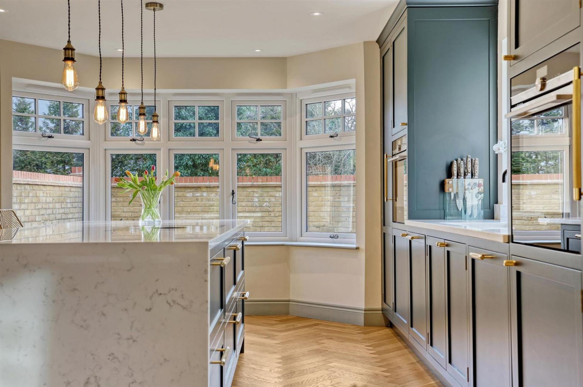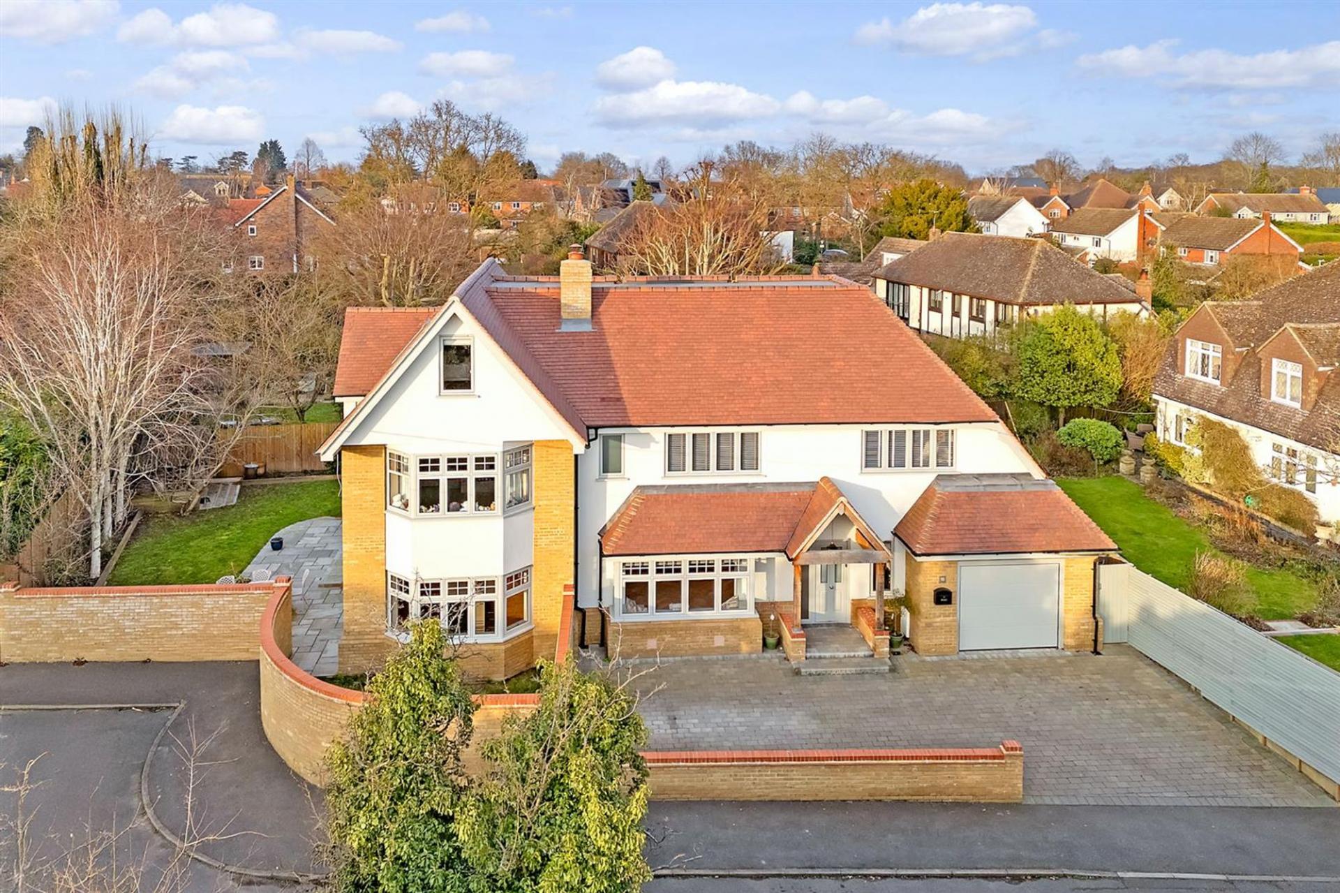 Nestled in a tranquil close off the sought-after Well Lane, this bespoke five-bedroom detached residence offers over 3,500 sq ft of meticulously designed living space. Crafted by the current owners to an exceptional standard, the home offers an expansive interior and wonderful privacy for such a centrally located property.