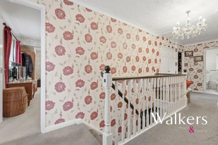 Upstairs, the first floor features five well-proportioned bedrooms, perfectly suited to growing families or those needing dedicated home office space. The principal bedroom benefits from its own en-suite shower room, while a modern family bathroom serves the remaining bedrooms. Each room is light-filled and thoughtfully arranged to maximise comfort and flexibility.