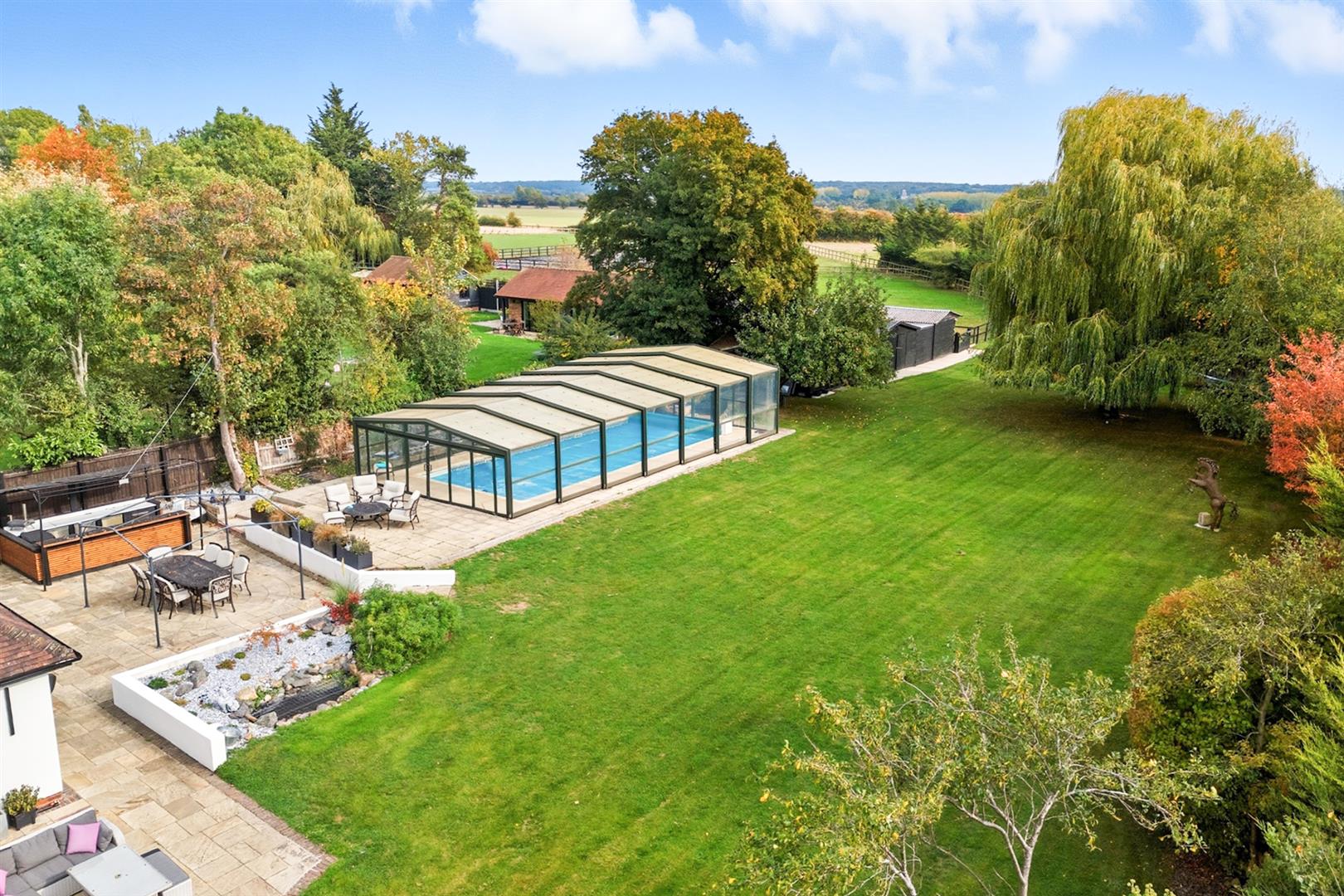 An exceptional detached 4/5 bedroom country home in the sought-after village of Nine Ashes, Ingatestone. Set within nearly two acres, this beautifully presented residence features elegant living spaces, landscaped gardens, a swimming pool with outdoor kitchen, garden room, and equestrian facilities including three stables and grazing land. Offering refined country living with contemporary comfort, this unique property represents a rare opportunity. For full details or to arrange a private viewing, please contact Ben at Walkers on 07355 616718.