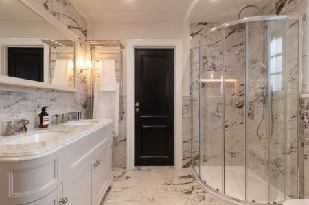 - Luxury bathrooms featuring marble finishes, Haddon sanitaryware and statement freestanding baths