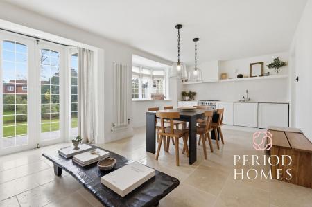 - Spacious open plan kitchen, dining and sitting area overlooking the garden.