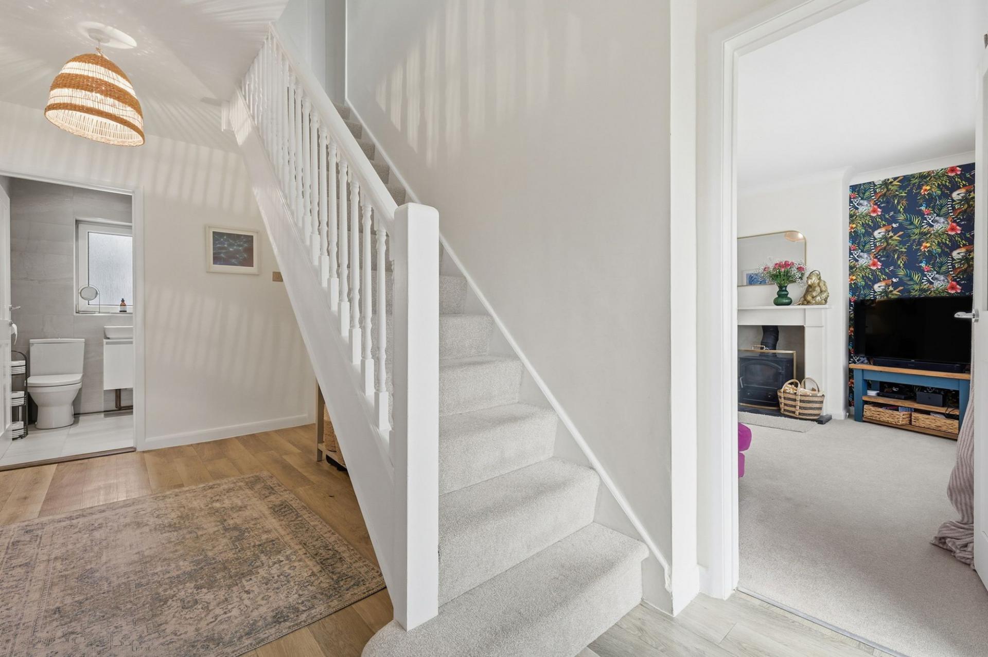 The first floor offers four well-proportioned bedrooms arranged around a central landing. The principal bedroom enjoys a lovely outlook over the rear garden and features a modern en-suite shower room and walk-in wardrobe. Three further bedrooms provide excellent accommodation for family or guests, each presented to a high standard. A family bathroom completes the upper level.