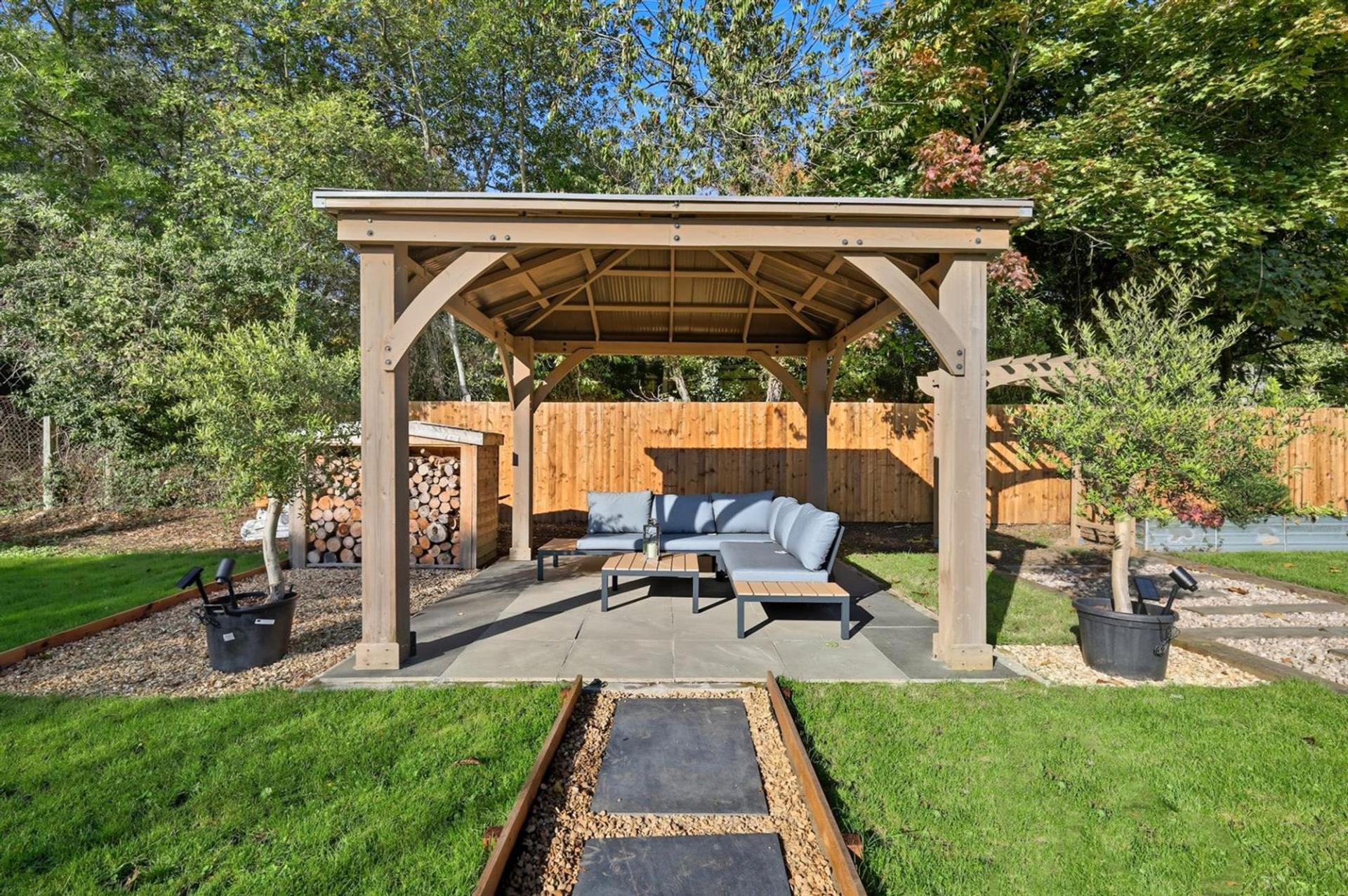 Outside, the landscaped rear garden includes ample space for a summer house and enjoys a westerly aspect perfect for enjoying the afternoon and evening sun, while the front offers a generous private driveway and access to the double garage. Boasting a corner plot the garden is enviably one of the largest for this size home.