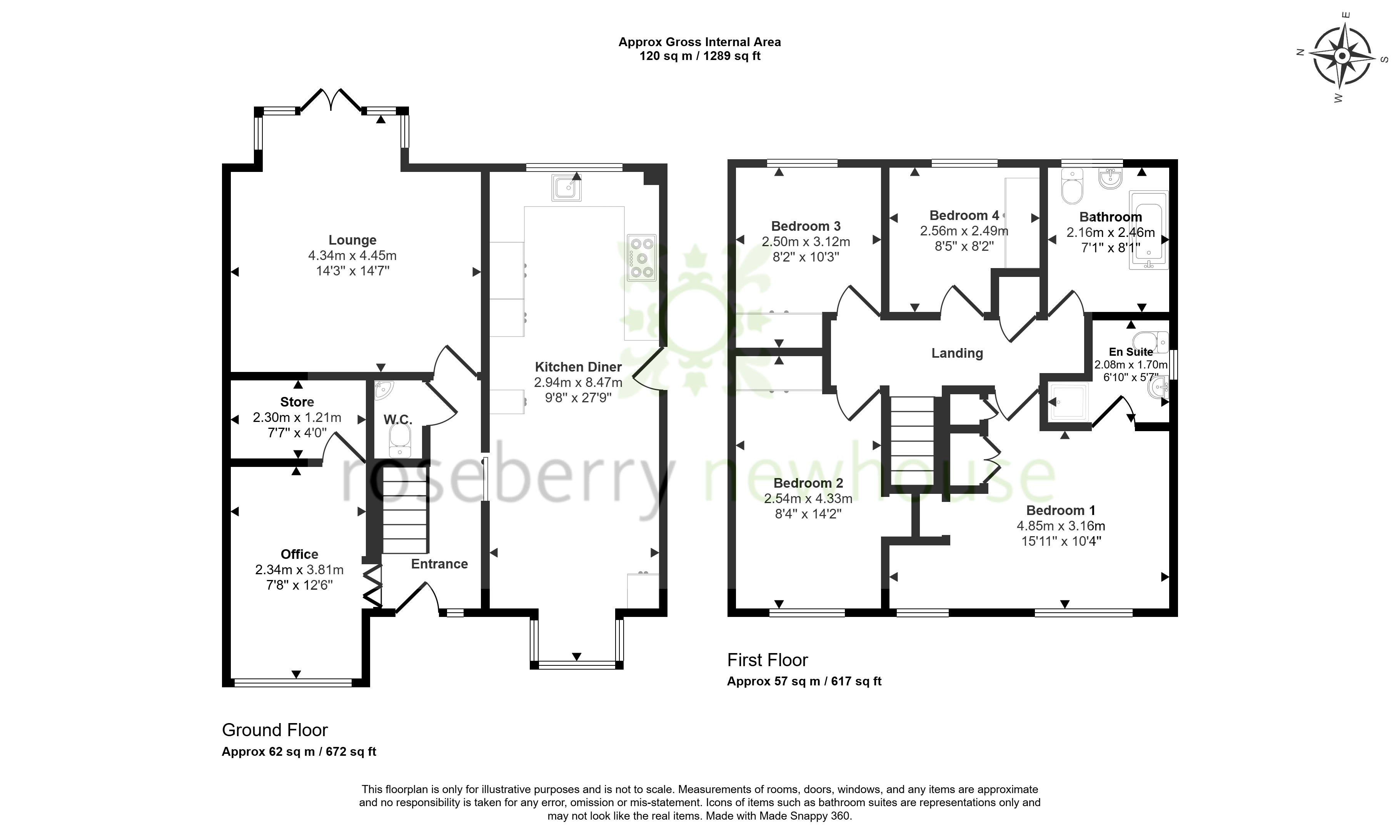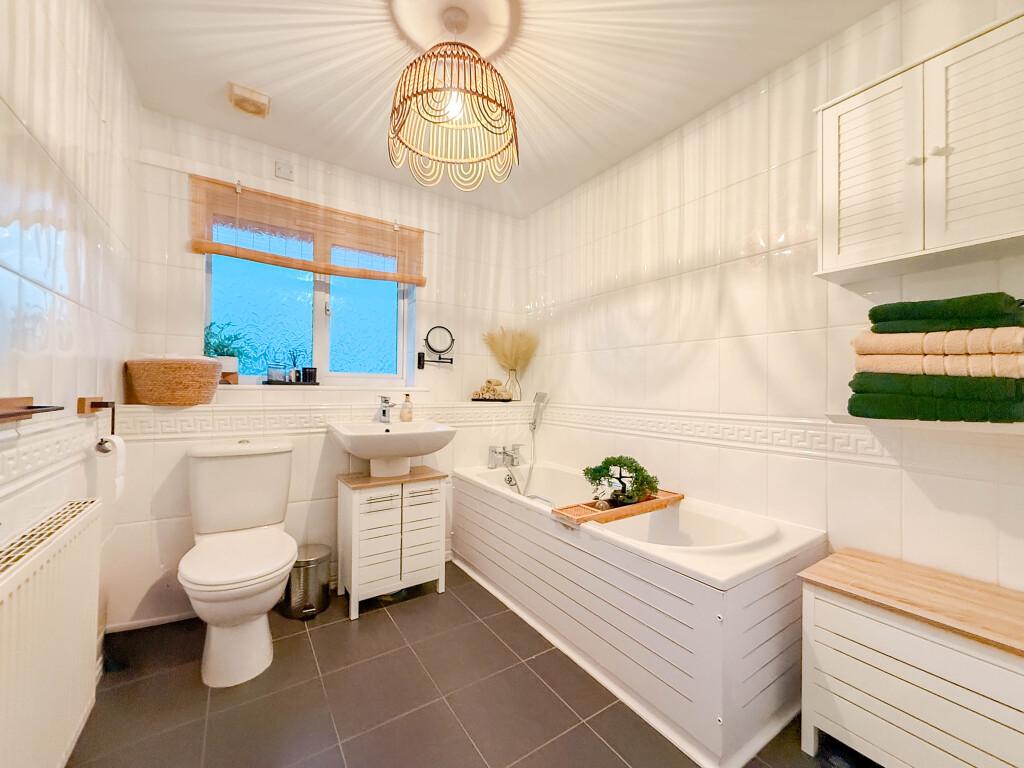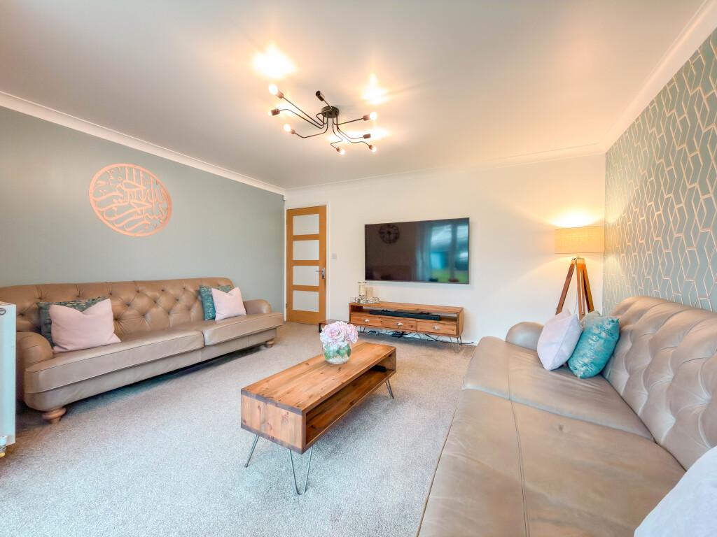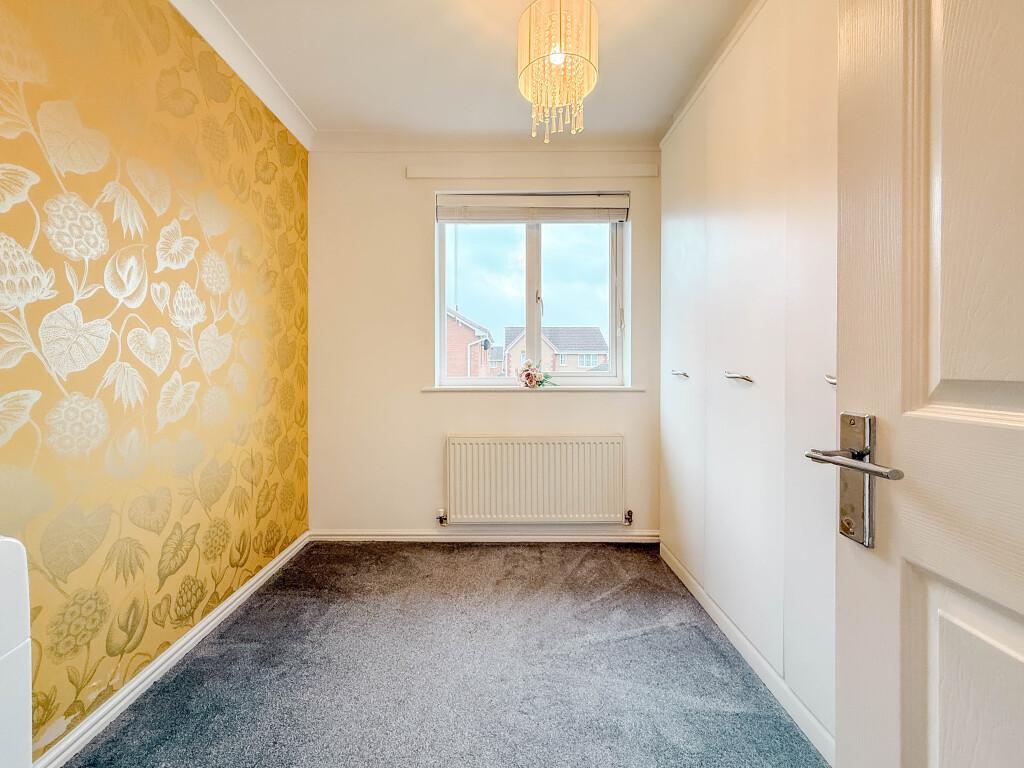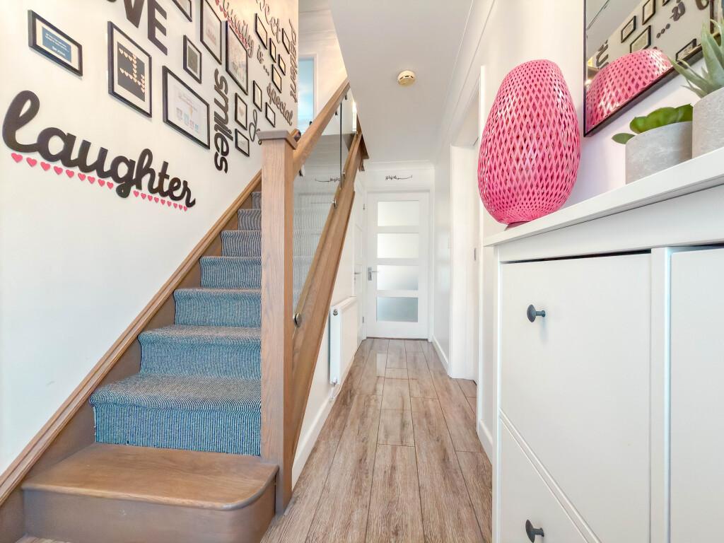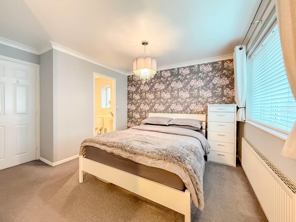 Upstairs, there are four well-proportioned bedrooms, all benefiting from fitted wardrobes. The principal bedroom features an upgraded en-suite shower room, with a modern white three-piece bathroom serving the remaining bedrooms.
