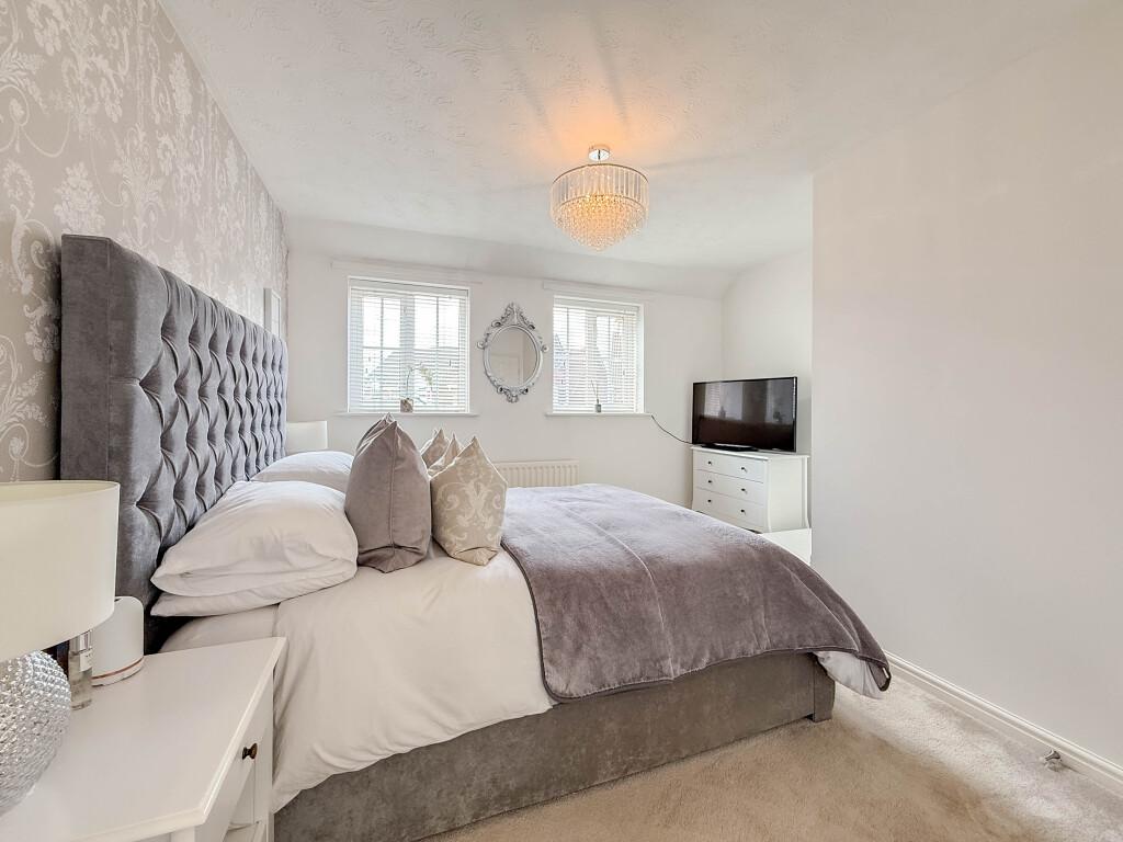 The first floor offers three generous double bedrooms, one benefiting from built-in wardrobes. The impressive master suite includes a dedicated dressing area and a modern en-suite shower room, while a stylish contemporary family bathroom serves bedrooms two and three.