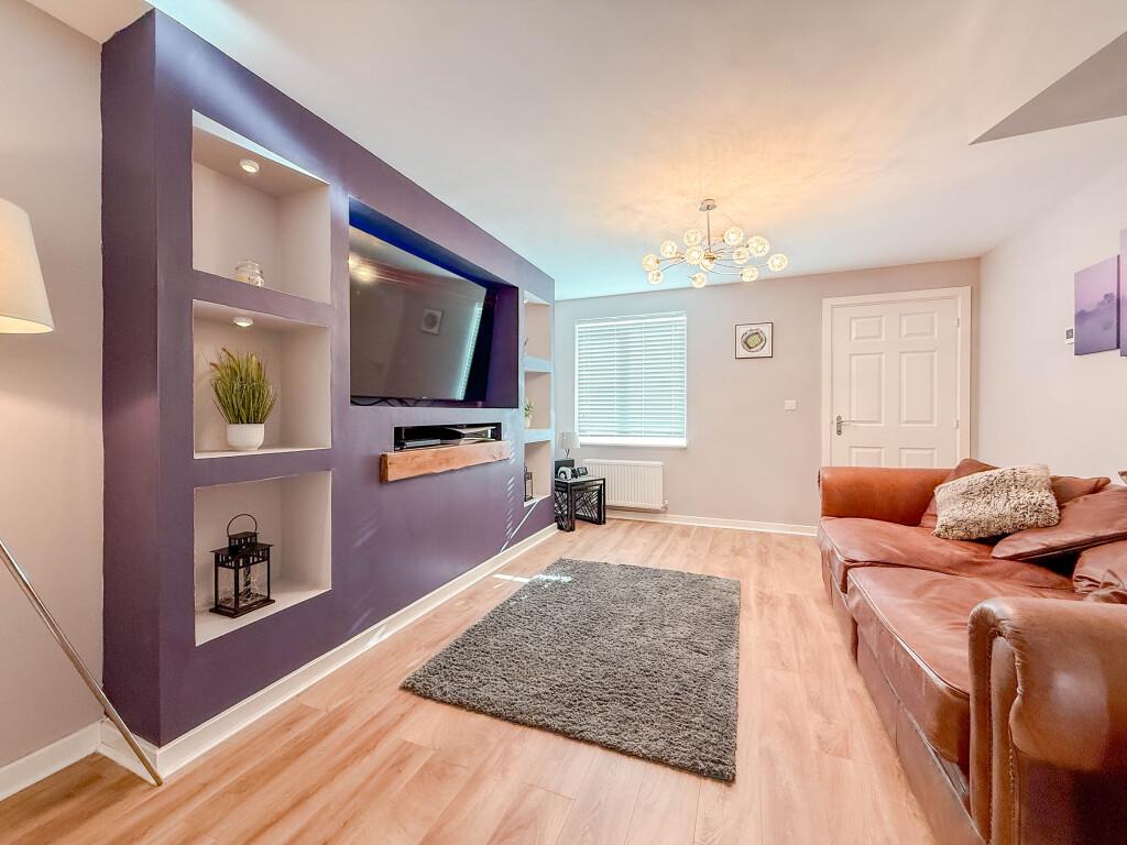 You enter via an entrance vestibule which leads straight into the lounge, a welcoming and well proportioned space centred around a contemporary media wall, giving the room a real focal point. From here, the layout flows naturally into an inner hall with a convenient ground floor WC, before opening into the heart of the home.