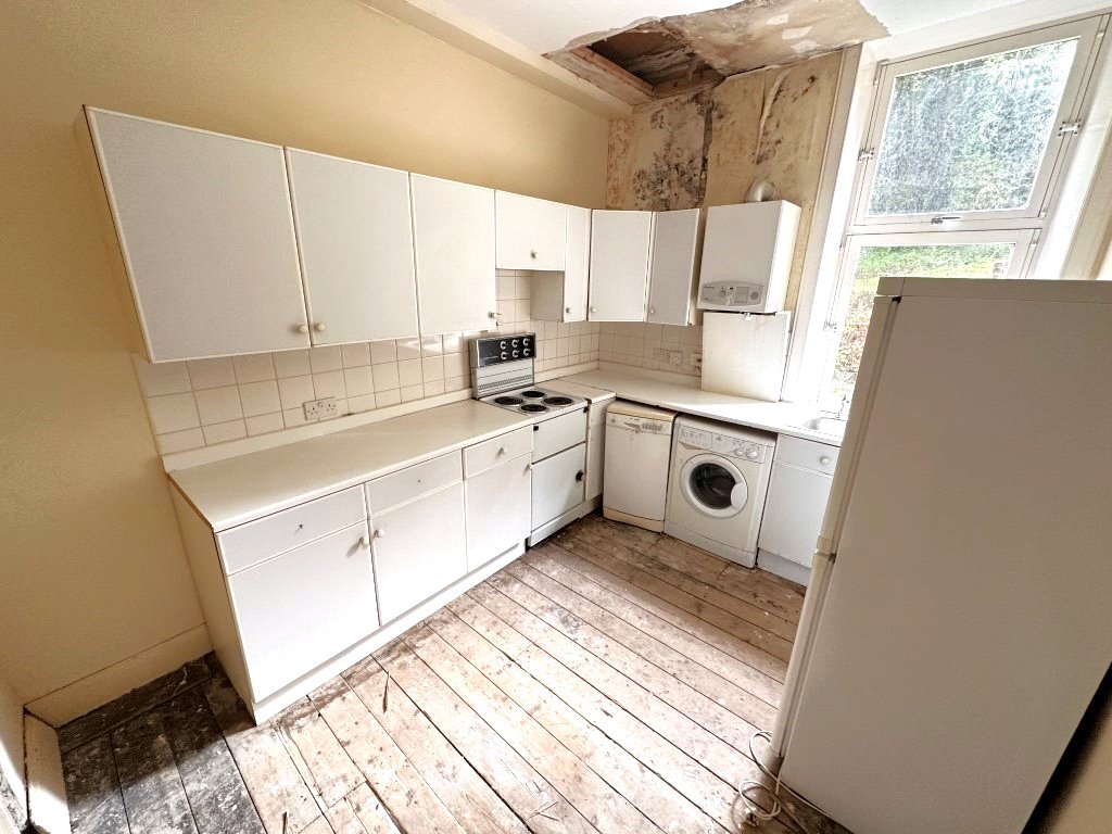This one bedroom apartment is located within a tenement four storey purpose built apartment block in Port Glasgow, Inverclyde. The property is comprised of an entrance hallway, lounge, one double bedroom, box bedroom, kitchen and shower room. This property also benefits from having a communal garden area. This apartment has a very attractive rental potential with a renovated, good condition, 1 bedroom apartment looking to achieve around £425 PCM in the local area. This means if purchasing at the home report price of £28,000, you would be looking at a rental yield of a staggering 18.2% making this a perfect deal for any investor looking to start or enhance their portfolio.