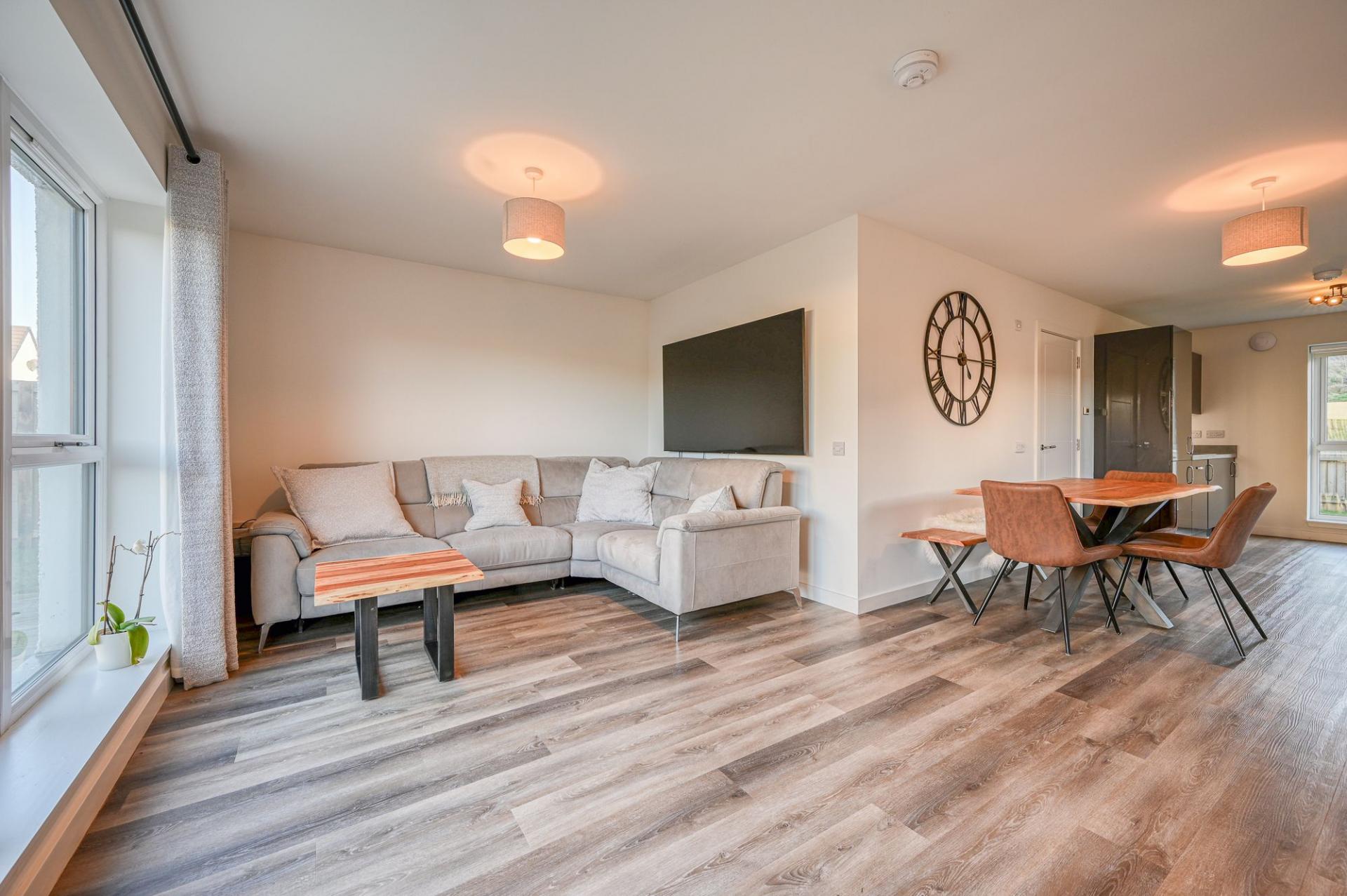 - Bright and spacious living space with open plan kitchen/living/diner area