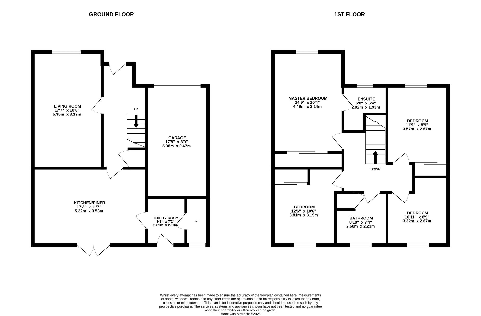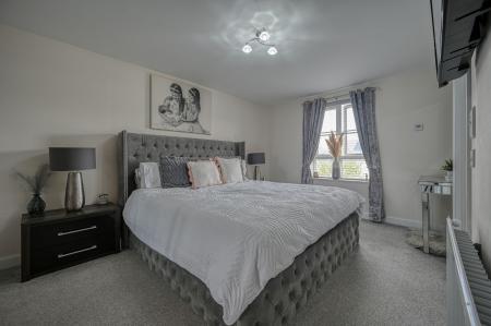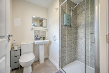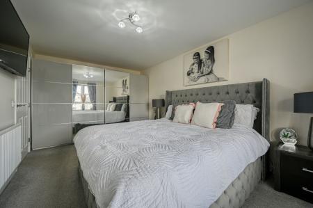 Upstairs, there are four generous double bedrooms, including a master with fitted wardrobes and a contemporary en-suite shower room. The family bathroom is finished to a high standard with a fresh white suite, offering a calm and relaxing space.