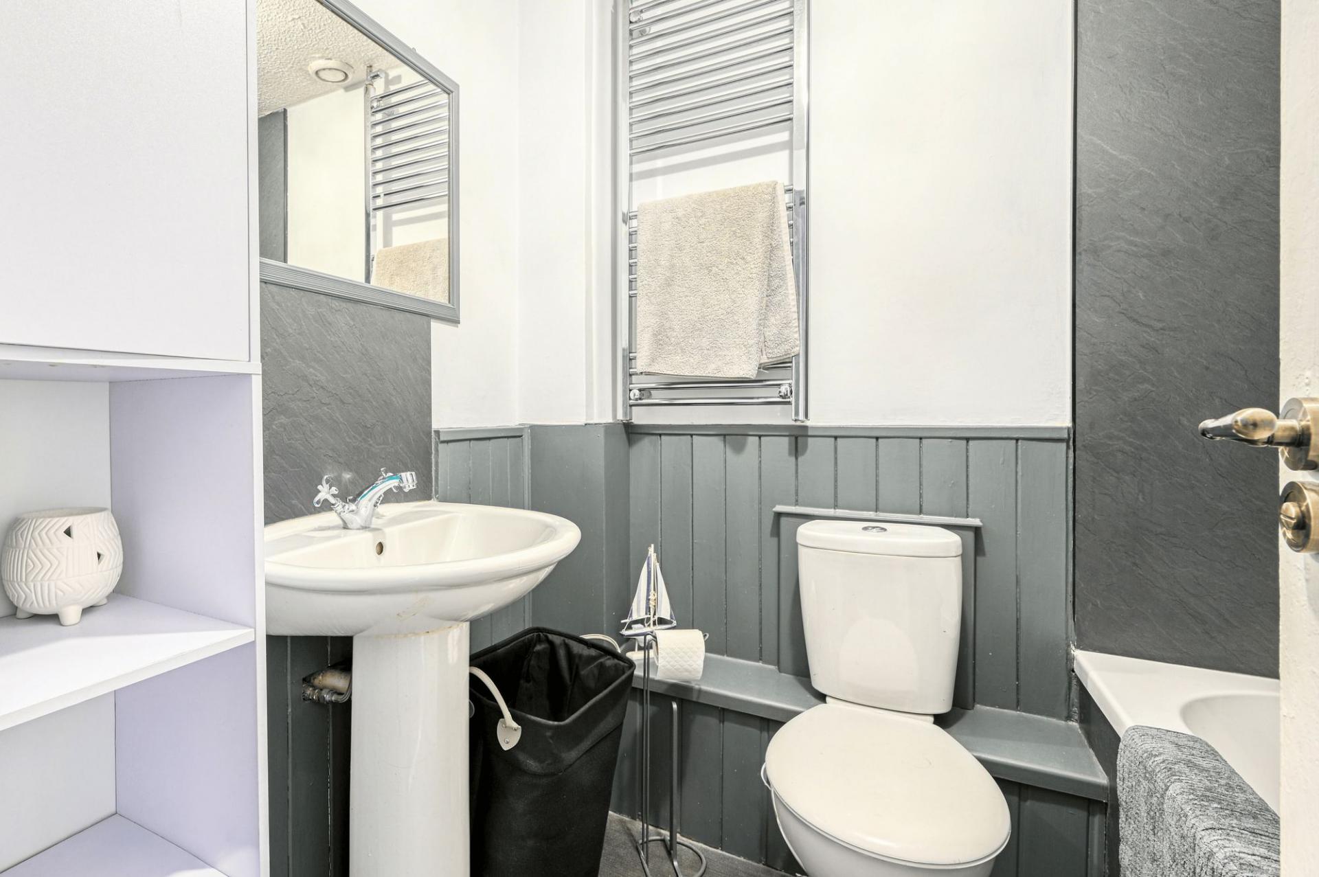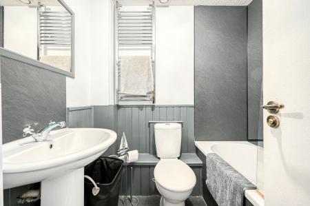 Upstairs, the property offers two generously sized double bedrooms, both benefiting from fitted wardrobes providing excellent storage. The accommodation is completed by a well-appointed family bathroom, fitted with a bath and overhead shower, WC, and wash hand basin.