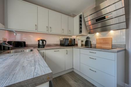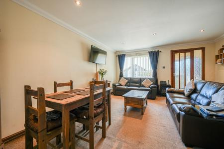 Inside, the bright and airy living room provides a welcoming space to relax, with plenty of room for a dining table – perfect for both everyday living and entertaining. The contemporary kitchen is a real highlight, boasting an excellent range of base and wall mounted units, generous worktop space, integrated appliances and a handy breakfast bar – ideal for morning coffee or casual dining.