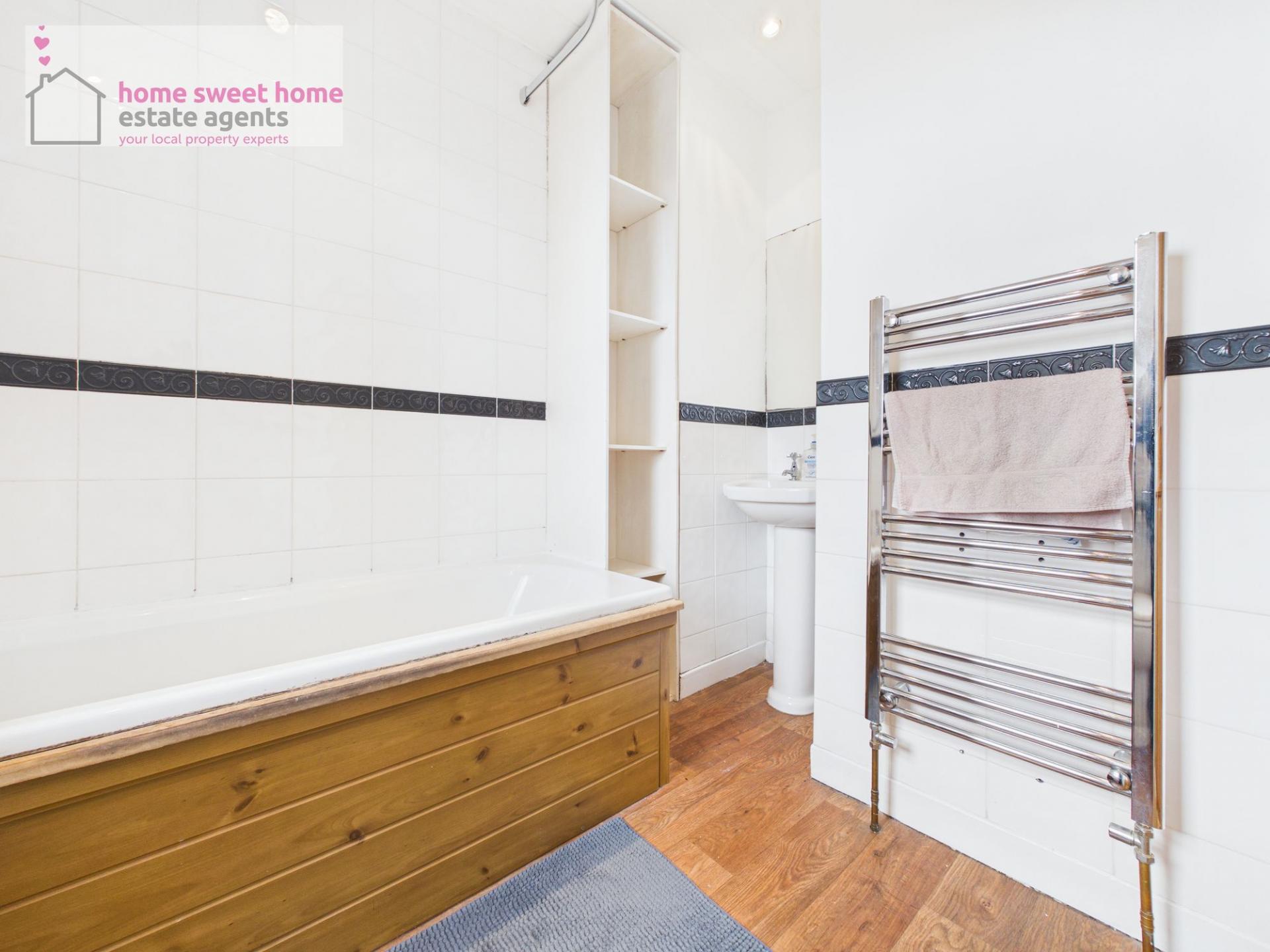 - Modern bathroom with shower over bath