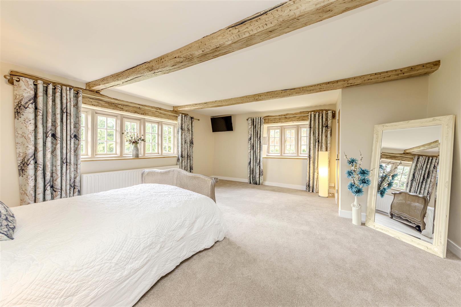Bedroom One - 5.54m x 5.44m (18'2" x 17'10") - Large main bedroom providing adequate space for seating area, making a lovely suite, windows to the rear and side aspects with beams over, feature wall with exposed beams and wall lights, fitted