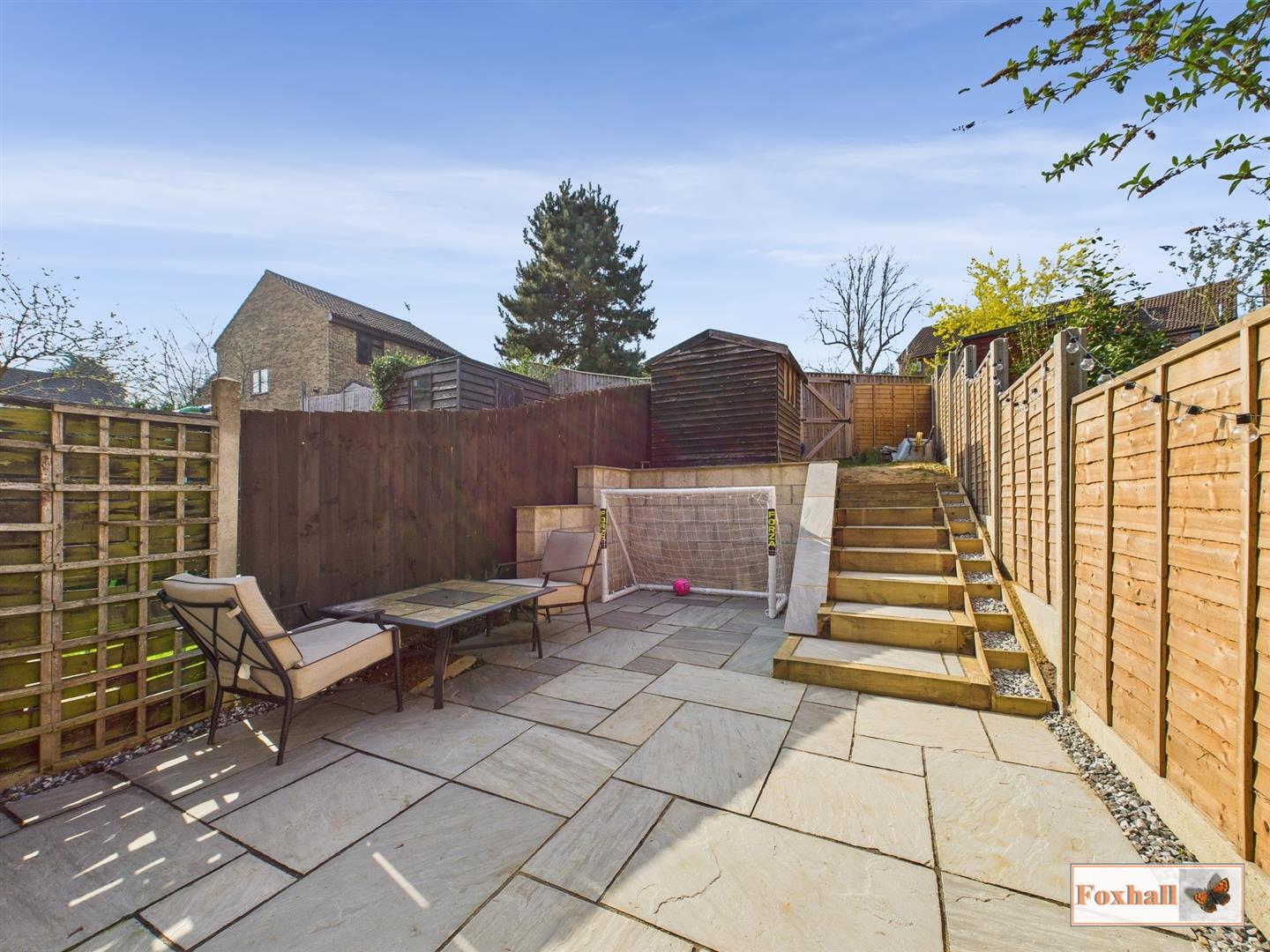 Rear Garden - 5.164 x 12.787 (16'11" x 41'11") - Large patio area, suitable for al fresco dining, steps up to the rear garden with a shed approx 6' x 8' (to stay), outside tap. pedestrian gate to the rear with passageway