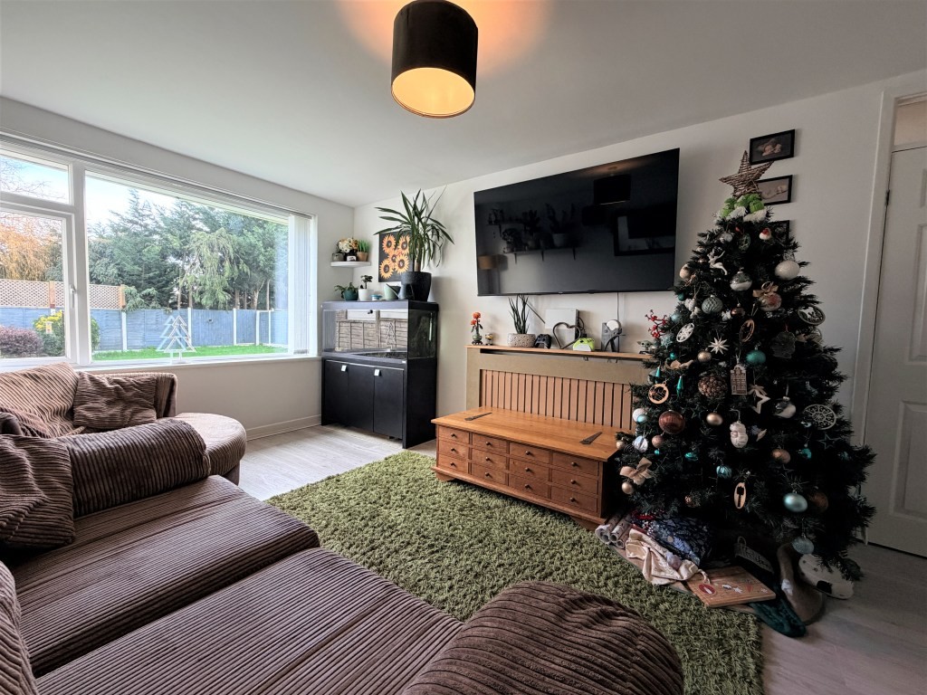 OUTSIDE Towards the end of a cul-de-sac, opposite a village green and nicely set back from the road by a good-sized frontage which provides ample driveway parking, access to an attached garage, and mature side lawn. The generous easterly facing enclosed rear garden is mainly laid to mature lawn with entertainment patio, and enjoys a leafy tree-lined outlook. There is also a mains power socket, tap, 1000 litre plastic oil tank, and personal door to the garage.