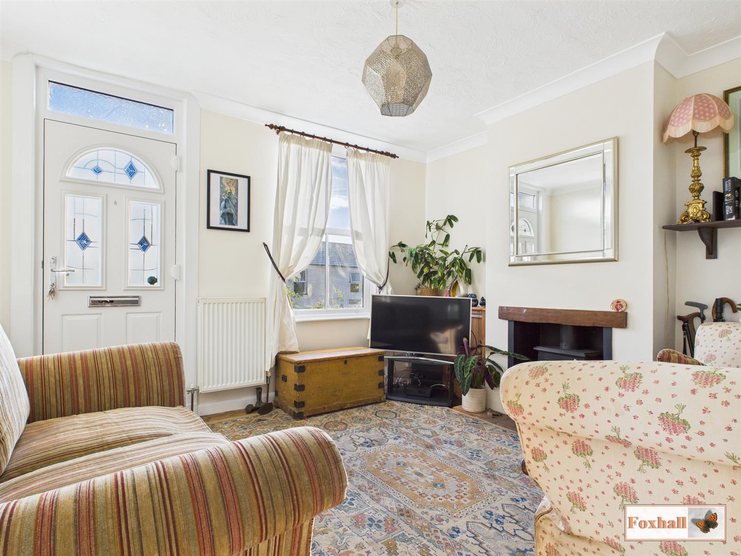 Lounge - Entry via a double glazed obscure door facing the front, double glazed obscure window above, double glazed sash windows facing the front, radiator, natural wood flooring, coving, built-in storage cupboard with sliding door housing the gas and electric meters, a multi fuel burner inset into the chimney breast on a tiled base and access into the dining room.
