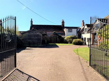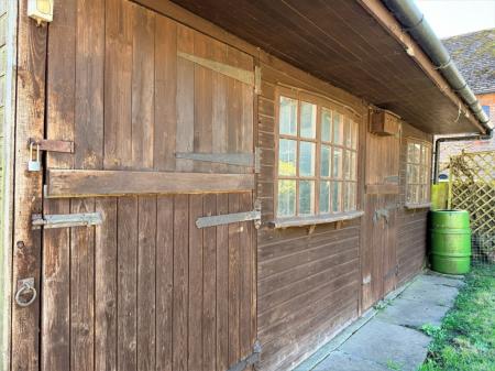 Externally, the property is approached via double iron gates opening onto a large block-paved driveway with parking for multiple vehicles. The south-east facing gardens, positioned to the front, are attractively landscaped with lawn, mature shrubs, trees, and rose bushes, alongside a private seating area with pergola and decking, there is no garden to the rear. Outbuildings include a substantial timber cart lodge or stable with power and lighting, as well as a rare and distinctive smokehouse, indicative of the property's unique past use.