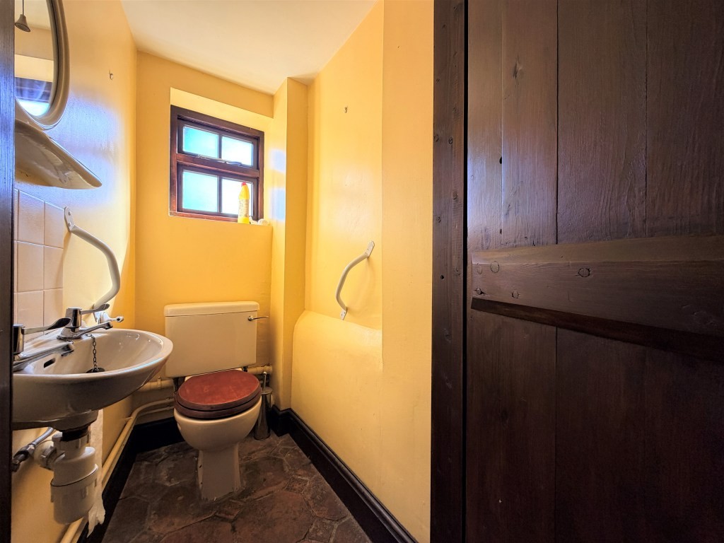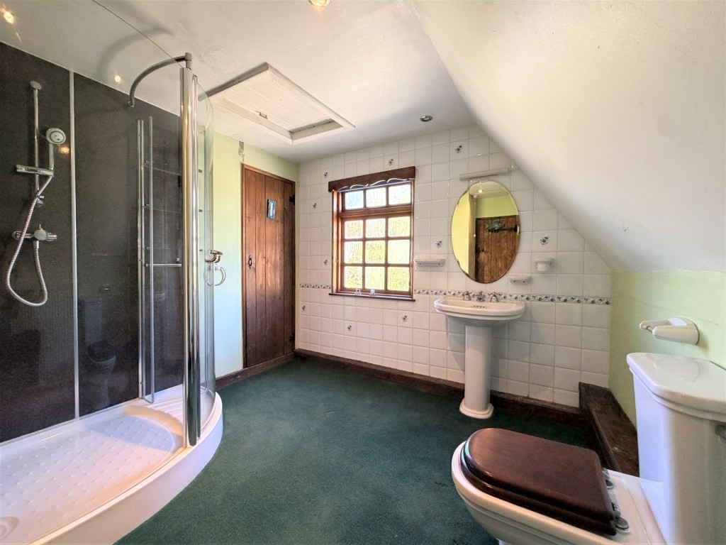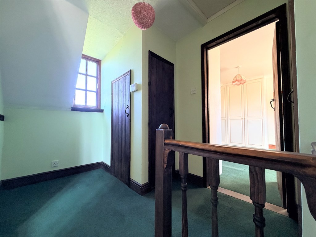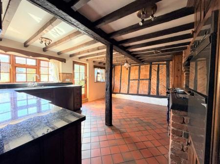 Internally, the accommodation is both extensive and flexible in layout. A spacious reception hall leads to a cloakroom and into a characterful kitchen/breakfast room featuring exposed beams, herringbone brickwork, and an Aga set within a traditional chimney breast. This is complemented by a separate dining room and a substantial living room with further period detailing, including a feature fireplace and secondary staircase. A second kitchen enhances the property's versatility, supporting potential for annexe-style living or continued hospitality/holiday let use. The first floor is arranged across two landing areas, accommodating three bedrooms-one with an en-suite shower room-and a well-sized family bathroom, with reduced headroom in parts and various stepped levels reflecting the cottage's historic origins.