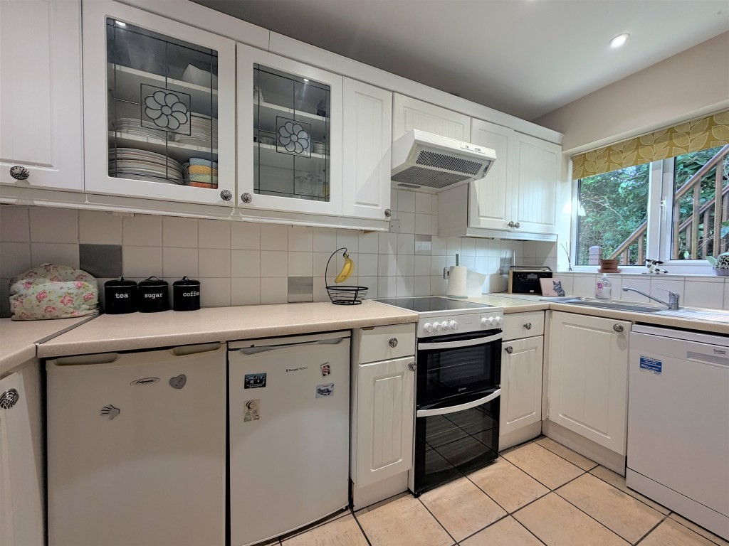 KITCHEN 11' 7" x 5' 5" approx. (3.53m x 1.65m) Double glazed window to side, vertical radiator, a classic range of base and eye level fitted cupboard and drawer units rolled edge work surfaces, inset stainless steel sink drainer unit with mixer tap, space for electric cooker, under counter spaces for fridge and freezer, floor standing oil fired boiler, tiled splash backs and floor, inset ceiling lights, loft space access hatch.