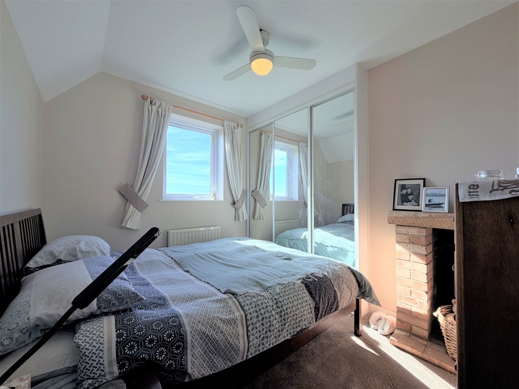 BEDROOM ONE 8' 7" x 8' 7" approx. (2.62m x 2.62m) Double glazed window to rear, radiator, built-in sliding fronted wardrobe, open fireplace with log-burner.