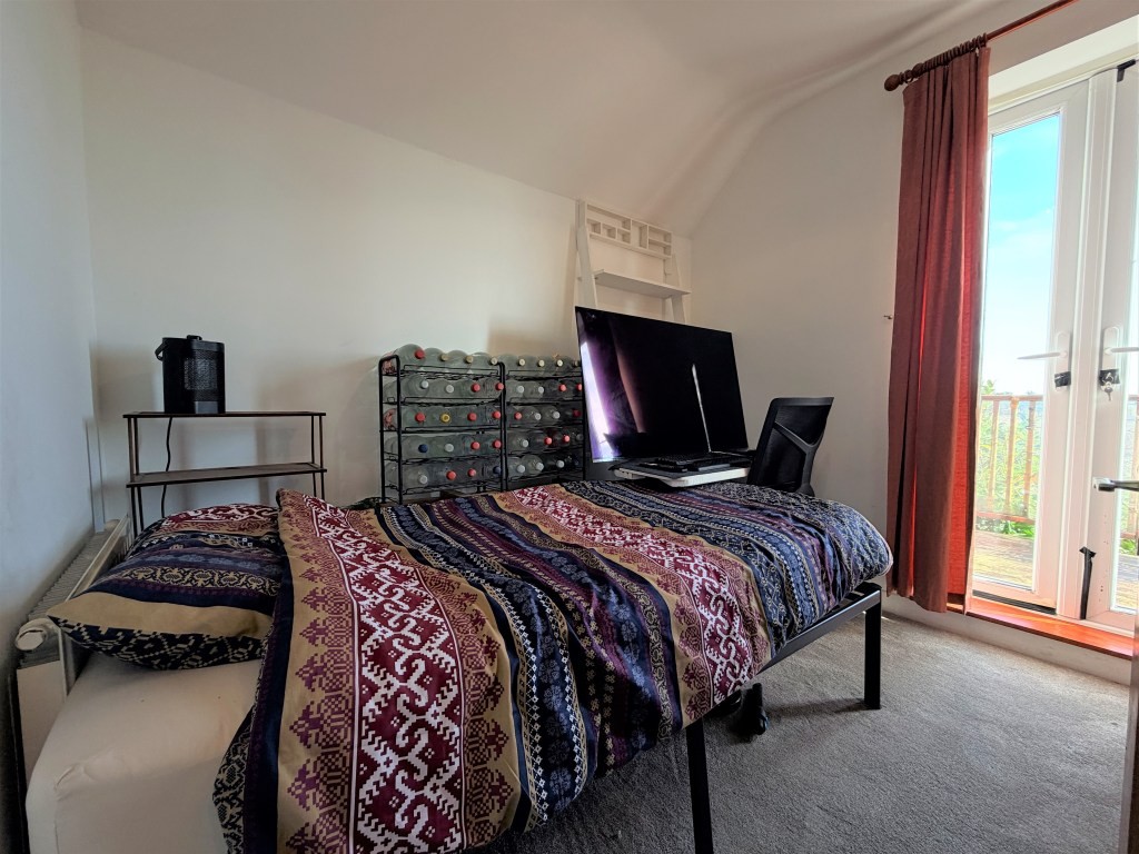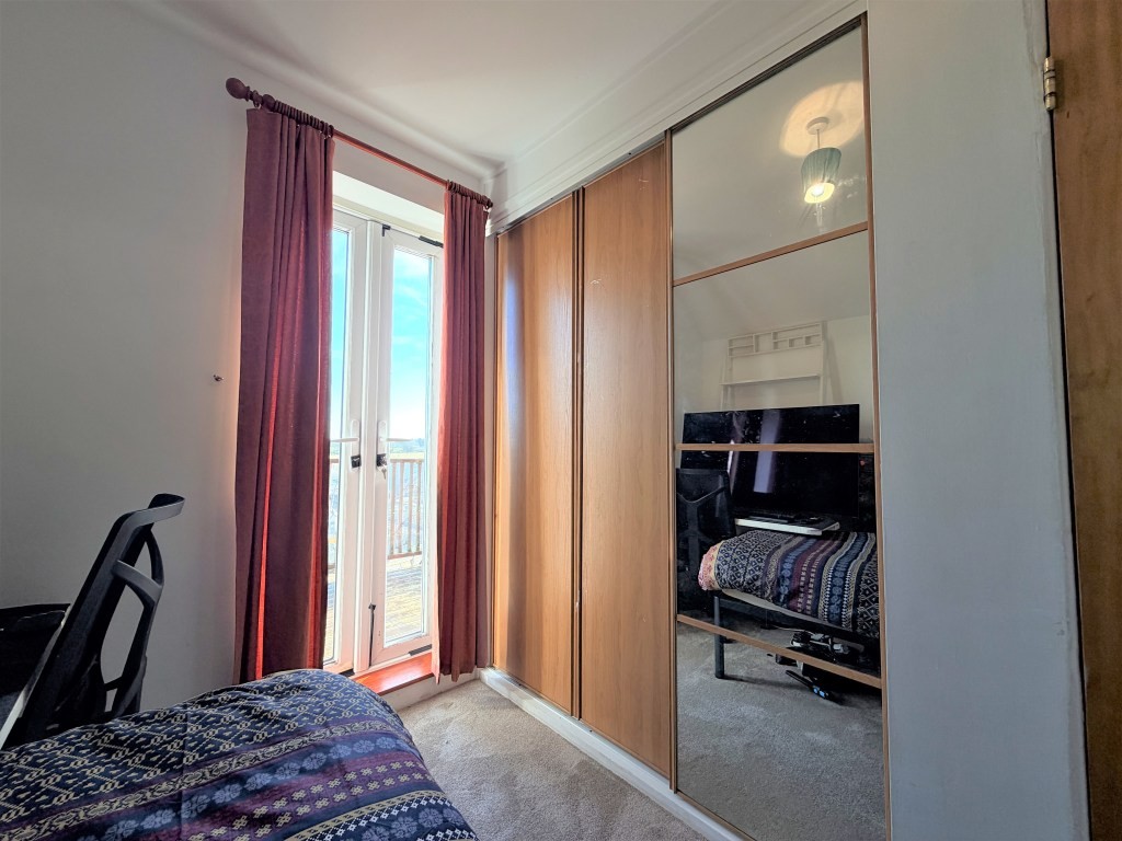 BEDROOM THREE 9' 1" x 6' 7" approx. (2.77m x 2.01m) Double glazed French doors opening out to entertainment terrace, radiator, built-in sliding fronted wardrobe, loft access hatch.