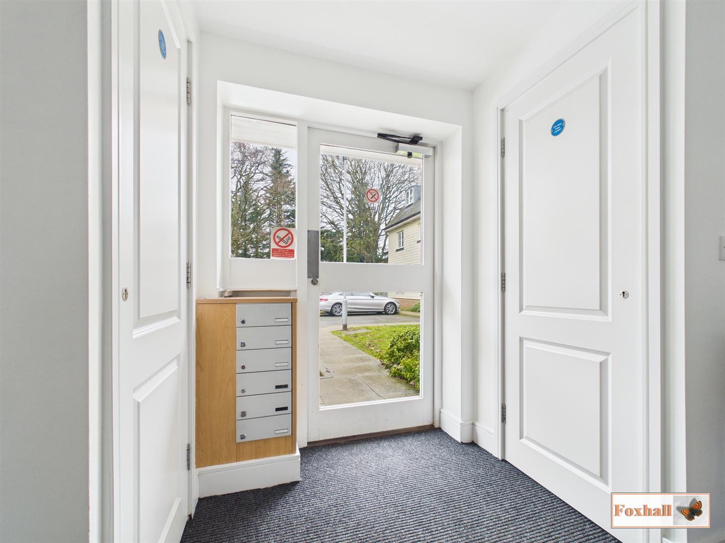 Communal Entrance Hallway And Stairs - The main front door to the block is on the ground floor and leads directly from the car park. There is a security entrance system, outside post boxes for the individual flats which then leads to a reception hallway with stairs rising to first floor.