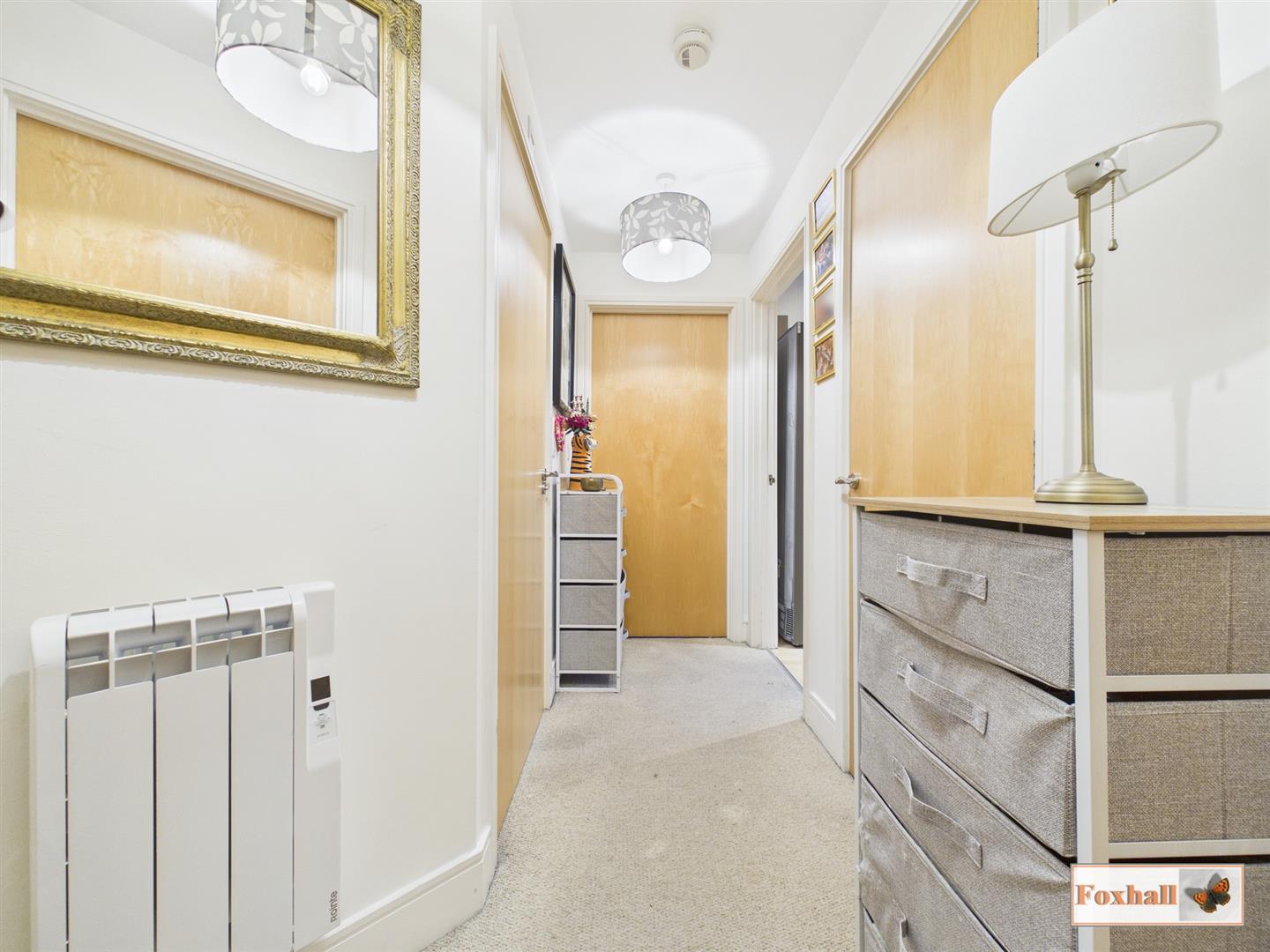 Reception Hallway - Entry via the lobby, electric radiator, intercom system, doors to bedrooms one and two, open plan living space, a storage cupboard which houses the water tank, and the shower room.