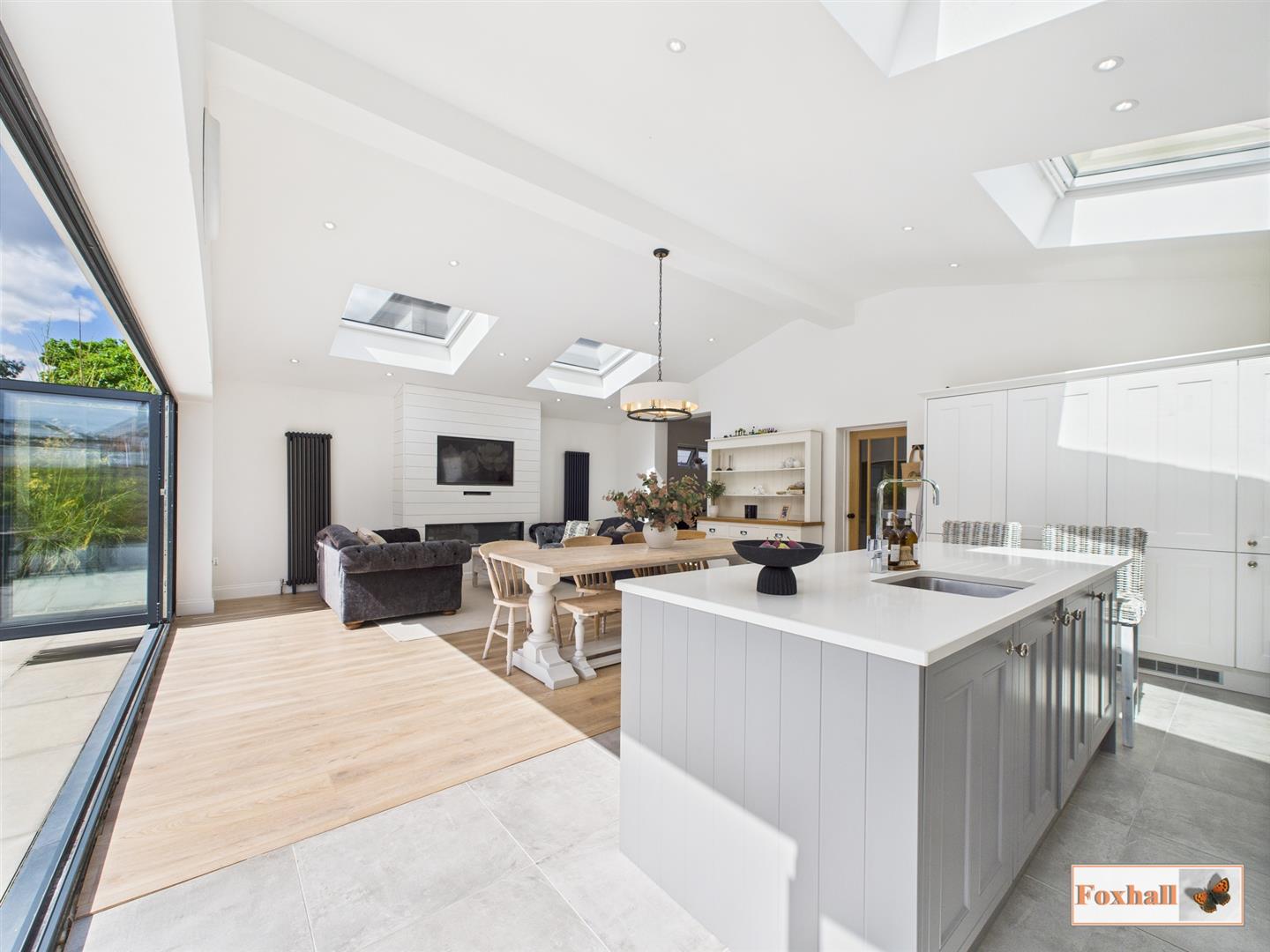 - UPVC WINDOWS AND DOORS IN CONTEMPORARY STYLE WITH FULL WIDTH BI-FOLDING DOORS OPENING OUT AT THE REAR