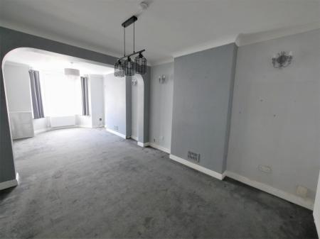 LOUNGE/DINING 25' 5" x 11' (7.75m x 3.35m) Carpeted flooring, double glazed bay window to front aspect, storage cupboard under stairs, door to kitchen.