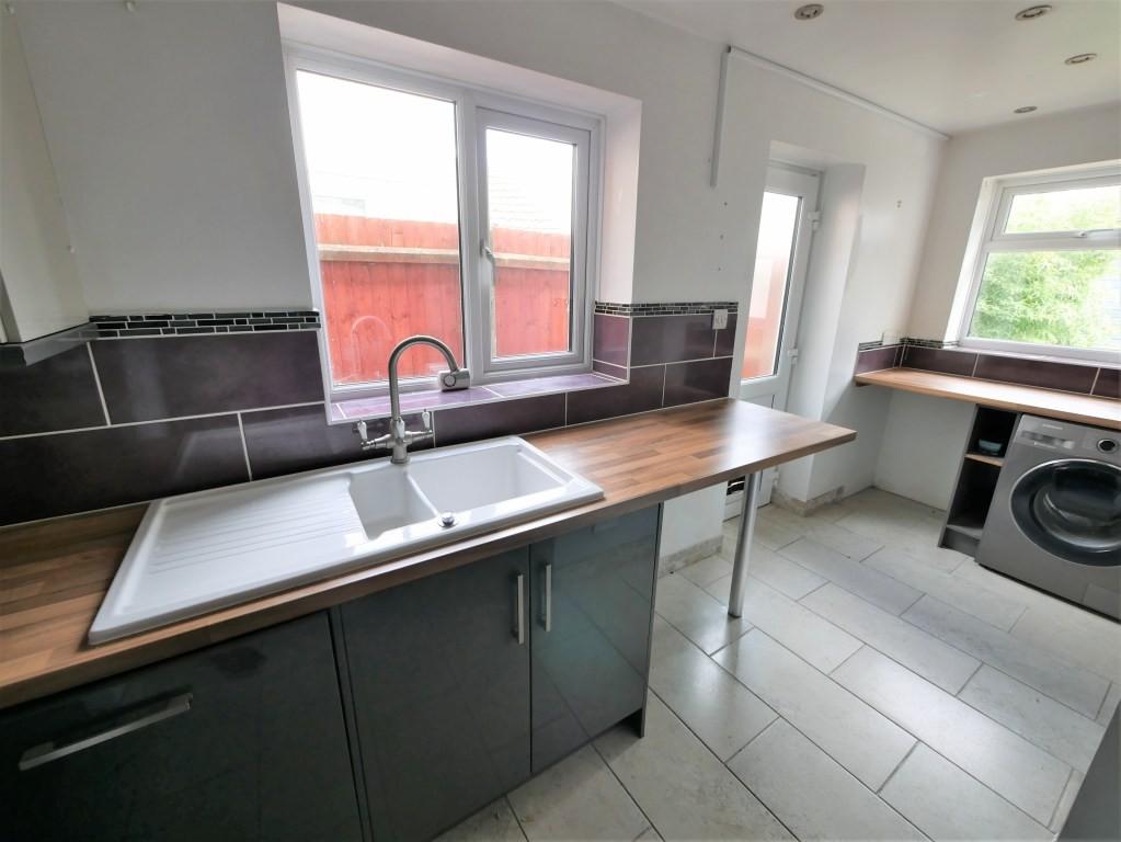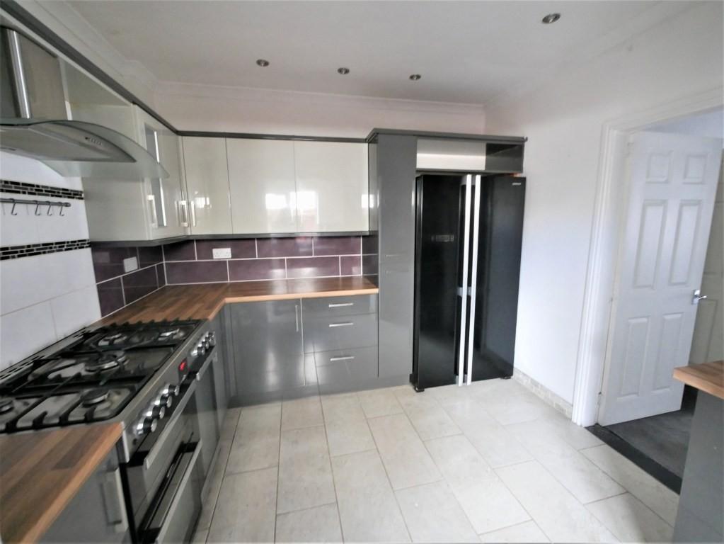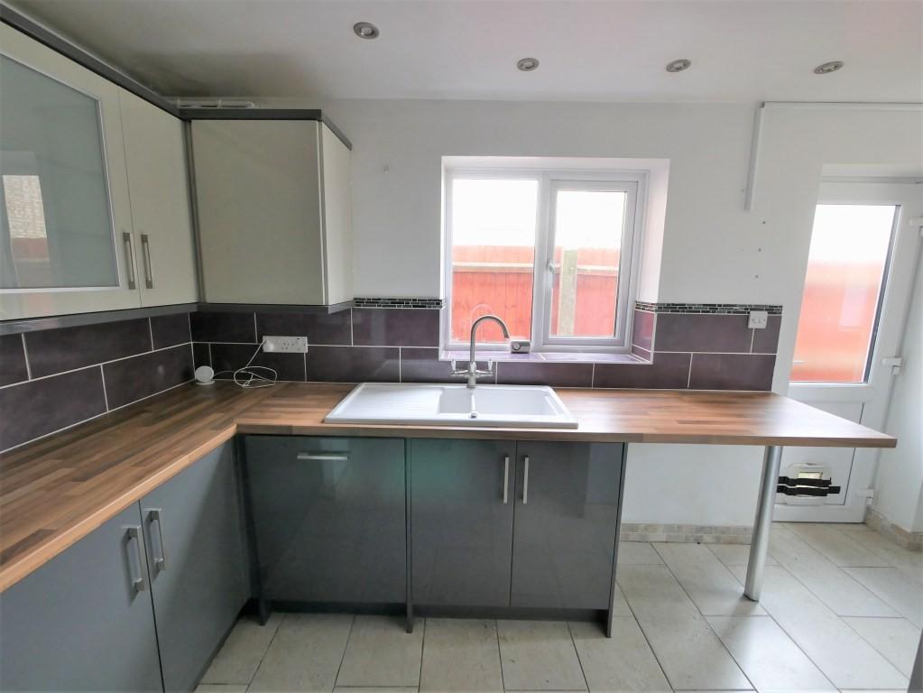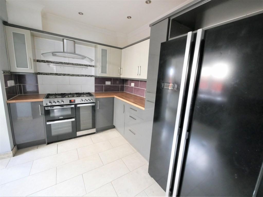 KITCHEN 16' Max x 13' 5" Max (4.88m x 4.09m) Modern glossy fronted base & wall units with wooden worktops, concealed gas boiler in wall unit, enamel inset sink & drainer with swan neck mixer tap, Belling 5 ring gas range with extractor over, American style fridge freezer, integrated dish washer, washing machine, tiled flooring, double glazed window to side and rear aspect, double glazed door to side aspect, side hallway with storage cupboard, door to shower room.
