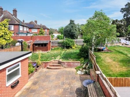OUTSIDE The frontage provides ample driveway parking and access to an attached garage, whilst to the rear there is an attractive easterly facing two tier garden with open outlook, predominantly laid to mature lawn and generous entertainment patio with water feature.