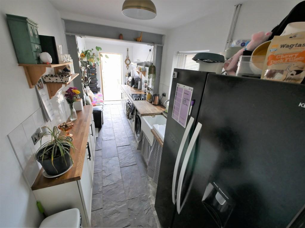 plumbing for washing machine, space for American style fridge/freezer, slate style flooring, electric hob & oven, double glazed window to rear aspect, Velux sky light, stable door to rear garden.