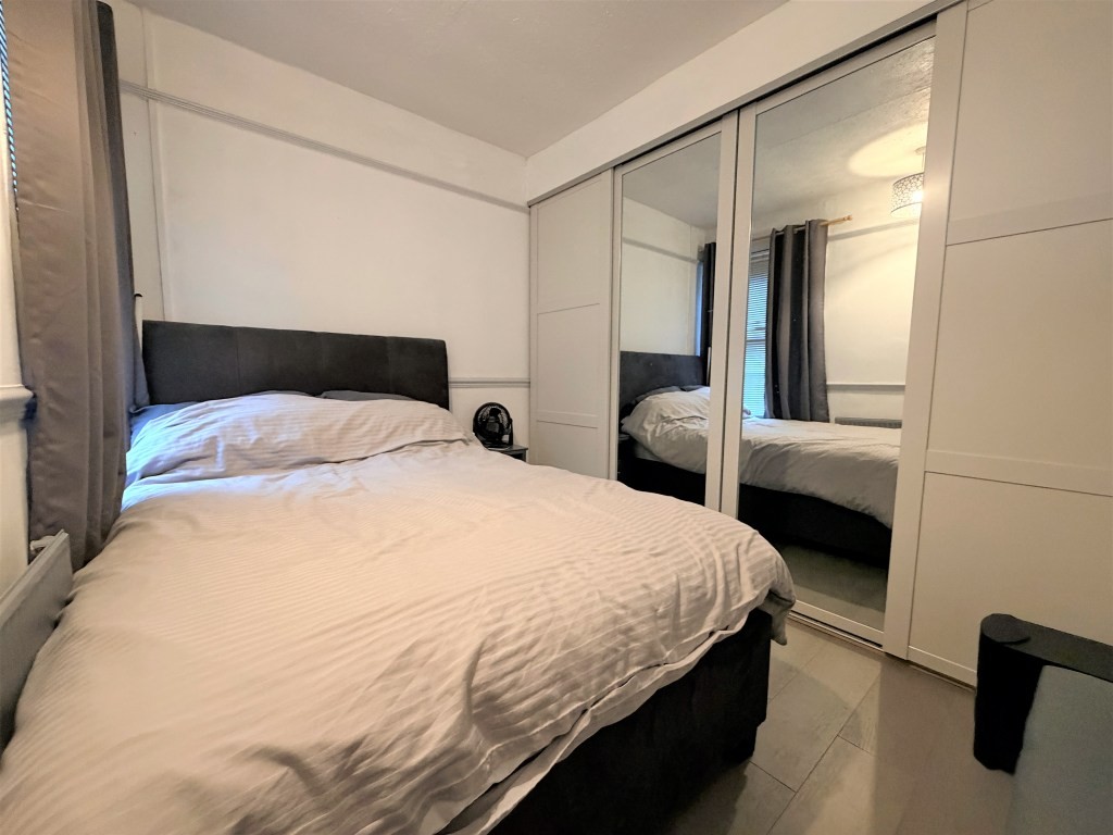BEDROOM TWO 10' x 9' 7" approx. to back of wardrobe. (3.05m x 2.92m) Double glazed window to rear, radiator, built-in triple wardrobe, picture and dado rails, grey washed natural wood flooring.