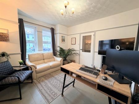 SITTING ROOM 11' 4" x 13' 4" max. approx. (3.45m x 4.06m) Two double glazed windows to front, radiator, feature fireplace recess, picture and dado rails, grey washed natural wood flooring.