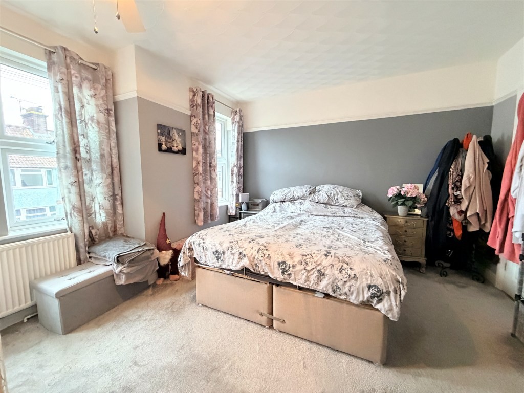 BEDROOM ONE 11' 3" x 13' 4" max. approx. (3.43m x 4.06m) Three double glazed windows to front, radiator, picture rail, fan-light, opening to en-suite.