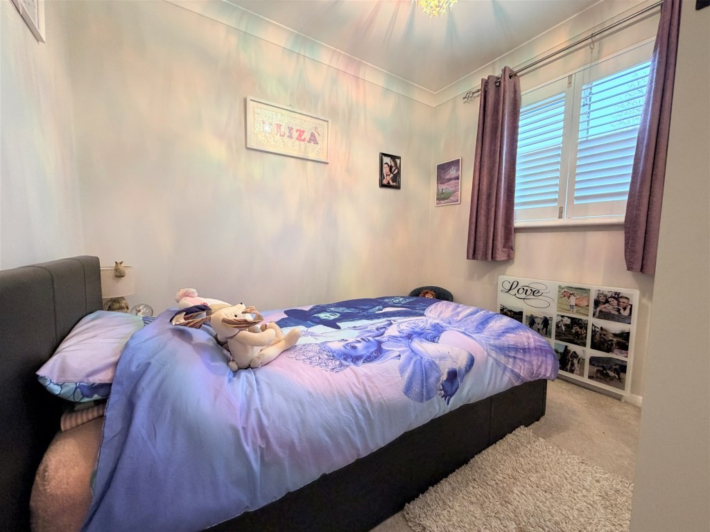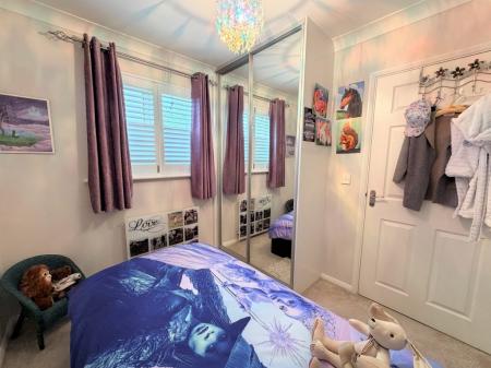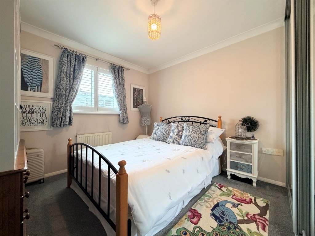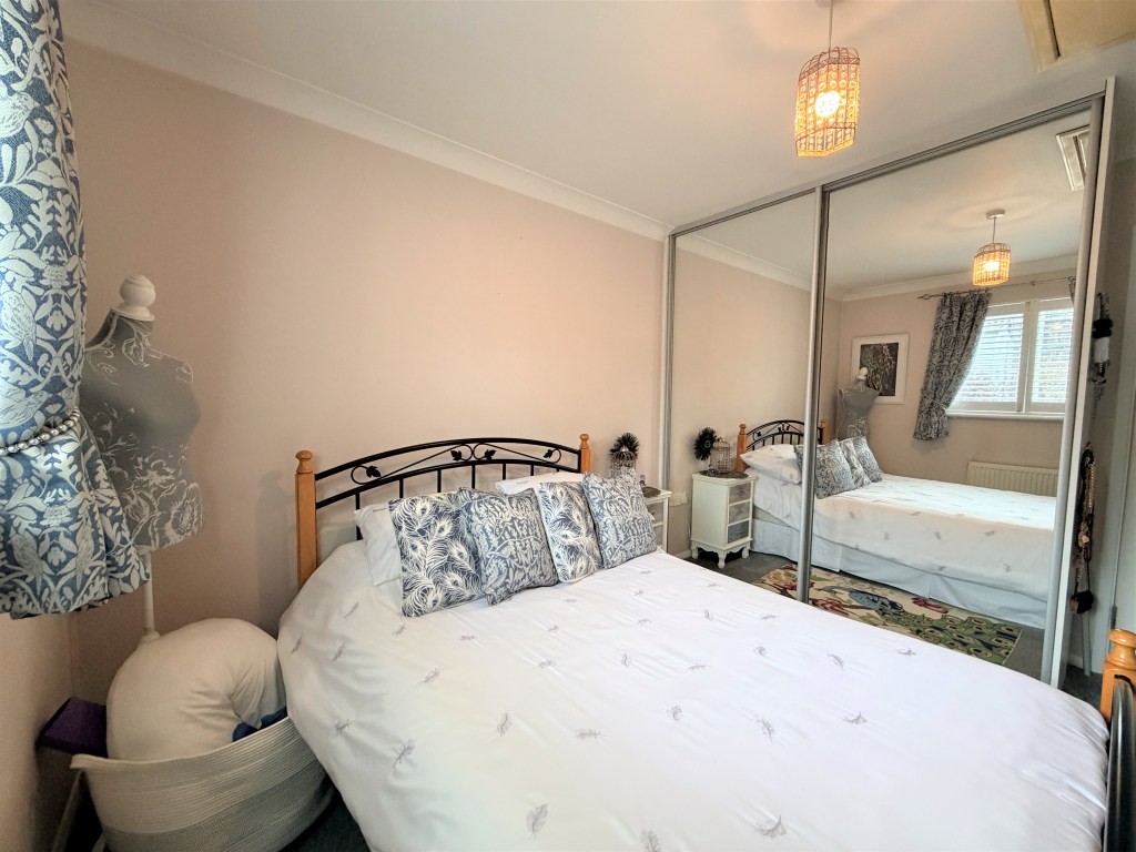 BEDROOM TWO 8' 10" x 8' approx. max. (2.69m x 2.44m) Double glazed window with fitted plantation blinds to front, radiator, built-in sliding mirror fronted wardrobe.