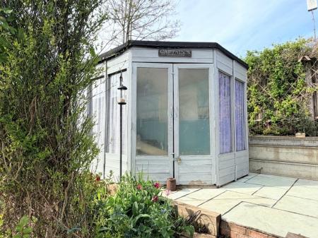 SUMMER HOUSE 10' 6" x 6' 7" approx. (3.2m x 2.01m) Predominantly glazed with double door entry.
