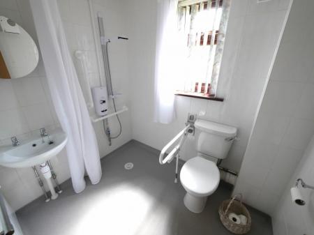 WET ROOM 6' 10" x 5' 6" (2.08m x 1.68m) Comprising low level WC, wash hand basin, electric shower non slip flooring, double glazed window to side aspect, extractor fan, electric wall heater, floor to ceiling tiled walls.