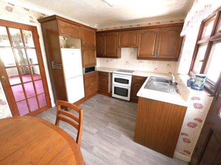 KITCHEN 12' 1" x 9' 3" (3.68m x 2.82m) Matching wall & base units with roll edge work top, electric cooker (to remain), stainless steel sink with drainer mixer tap, plumbing for washing machine, double glazed window to rear aspect, radiator, door through to conservatory.