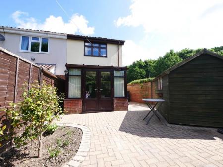 OUTSIDE Lawned frontage with pathway leading to front door, easy care rear garden which is block paved, garden shed, rear garden is fully enclosed by fencing and brick wall, gate to rear with pathway leading to allocated parking spaces.